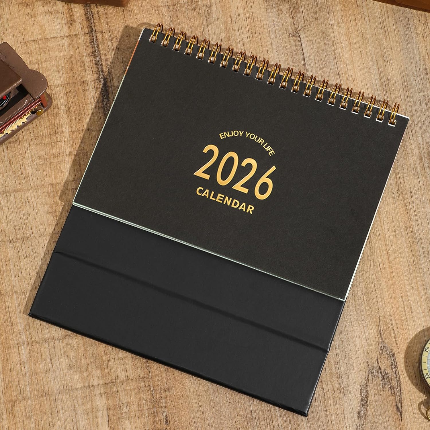 Small Desk Calendar 2025-2026, Standing Flip Desktop Calendar from July 2025 to Dec 2026 - Metal Ring Twin-Wire Binding Monthly Desktop Calendar for Home Office School (Black)