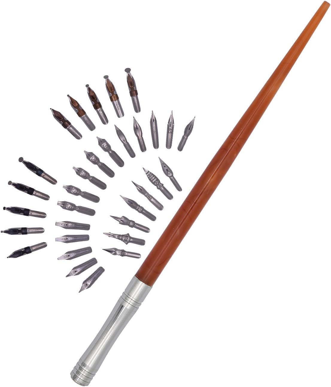 Gullor Resin Dip Pen Handcrafted Calligraphy Set with 33 Nibs for Art, Signatures, Drawing, Caligraphy Kits for Beginners (Brown)