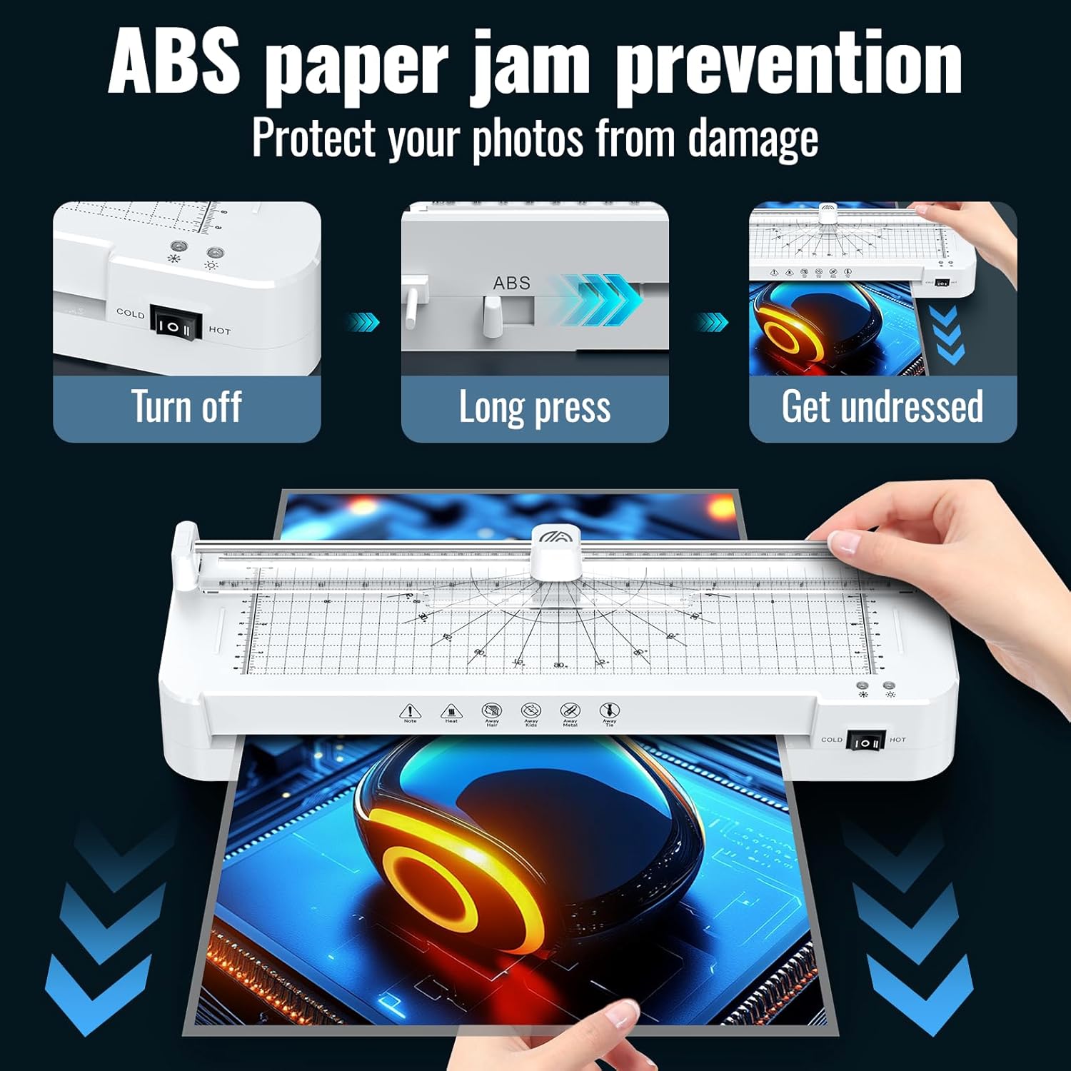 - ✅ 【ABS No More Paper Jam Stress】Unique ABS paper release lever lets you clear jams in 3 simple steps: turn off the laminator first, push and hold the ABS lever, pull the stuck pouch out. keep your workflow moving without frustration.