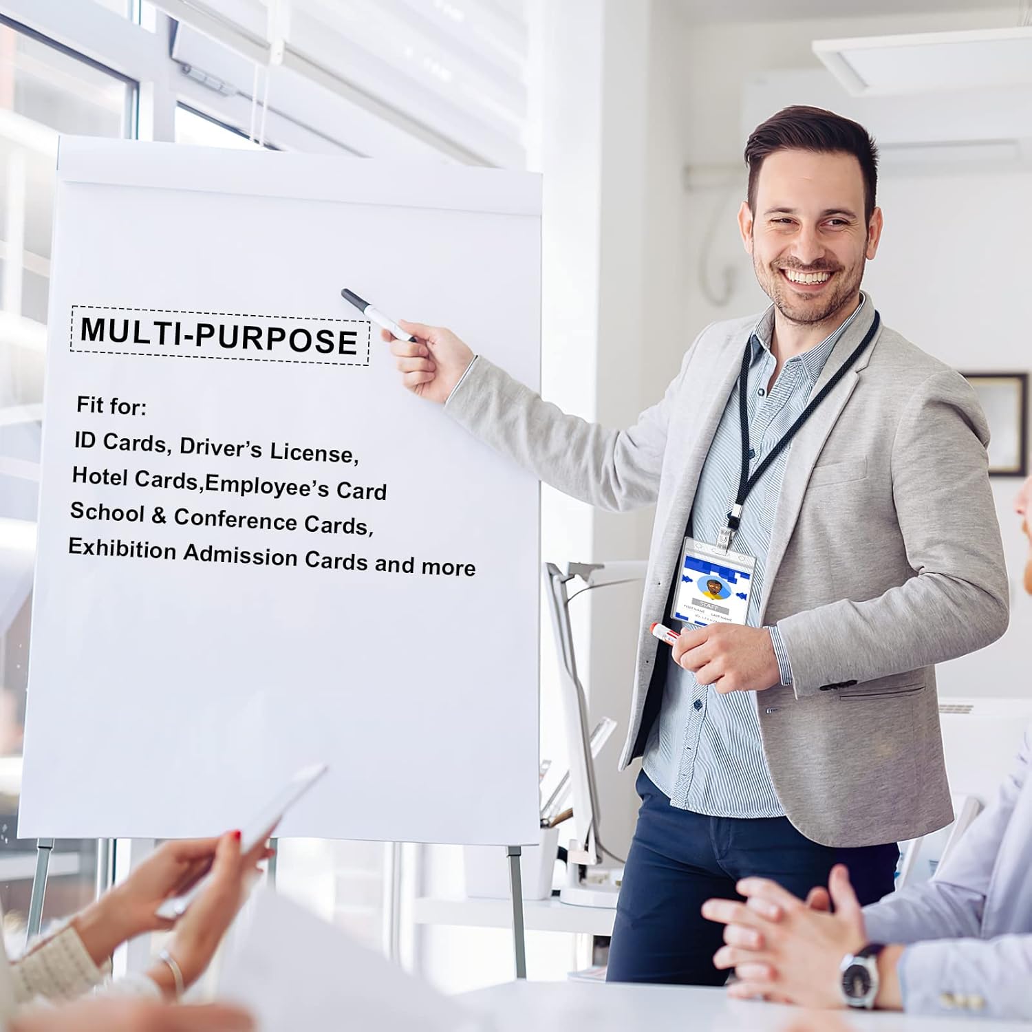 - Widely used: These ID Badge holders are perfect for factory workers, students, and office workers. Perfect for conferences, seminars, offices, trade shows, concerts, weddings, schools, security or other events that require badges or ID cards, name tags, credit cards, cardholders, keys