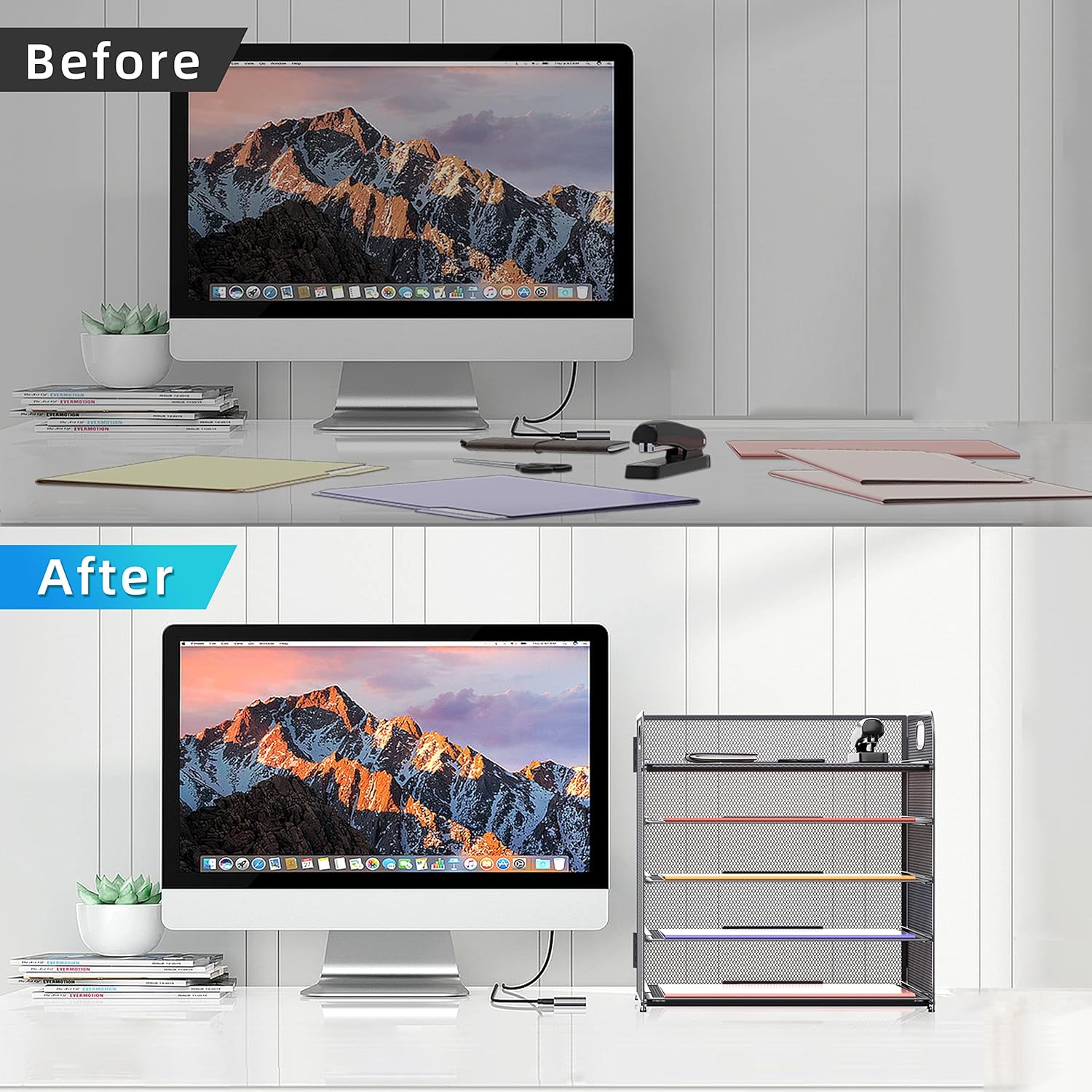 - [Easy to Install] The office organizer can be easy to install without screws and other tools. The entire installation process can be completed within a few minutes.