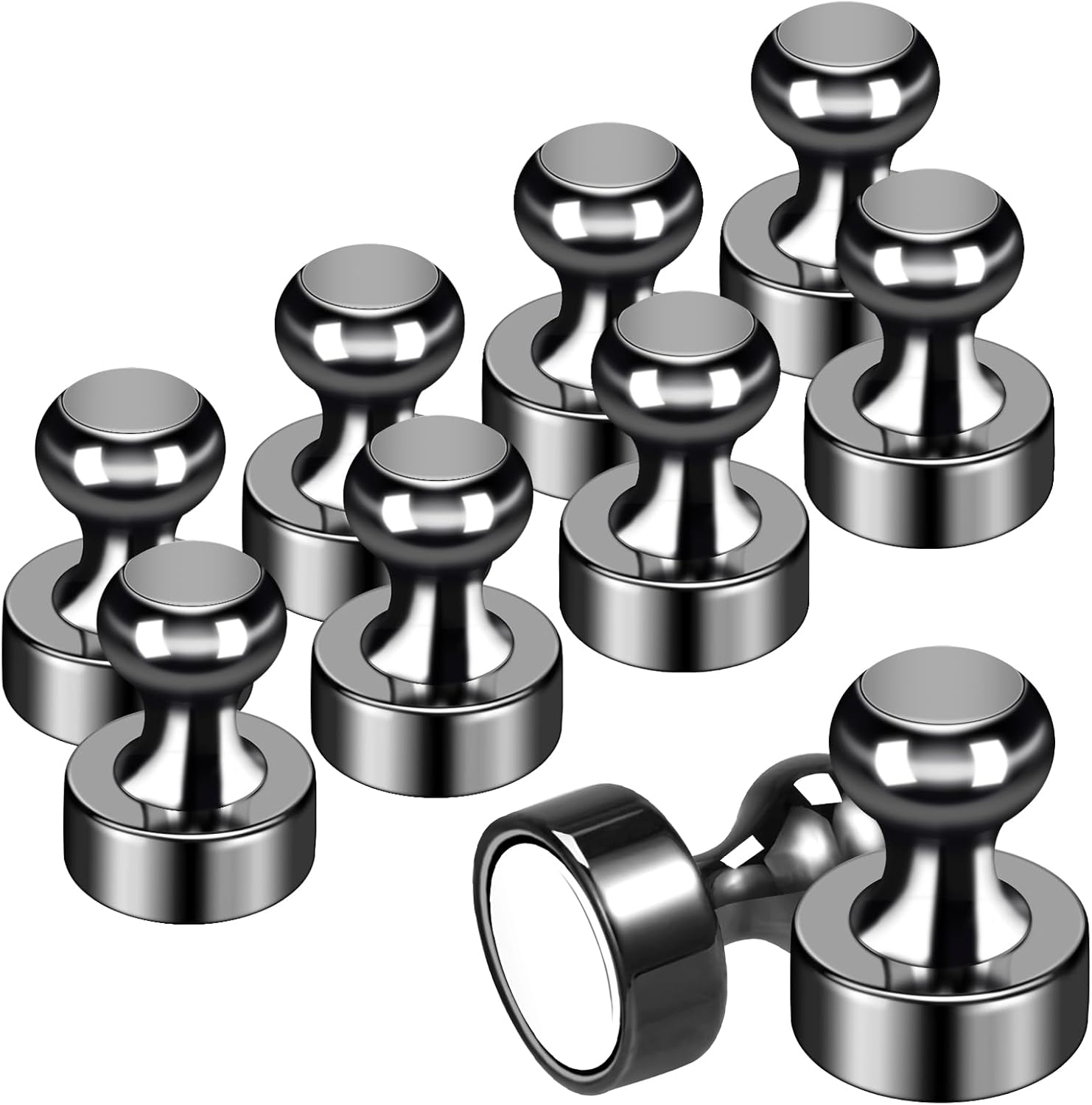 - 【What You Can Get?】Can be used repeatedly's 10-pack black refrigerator magnets for adults. Packed in a unique clear plastic container so you can store mini black magnets. Strong magnets will not leave any dirt on your fridge, whiteboard, or maps, and are easy to use.