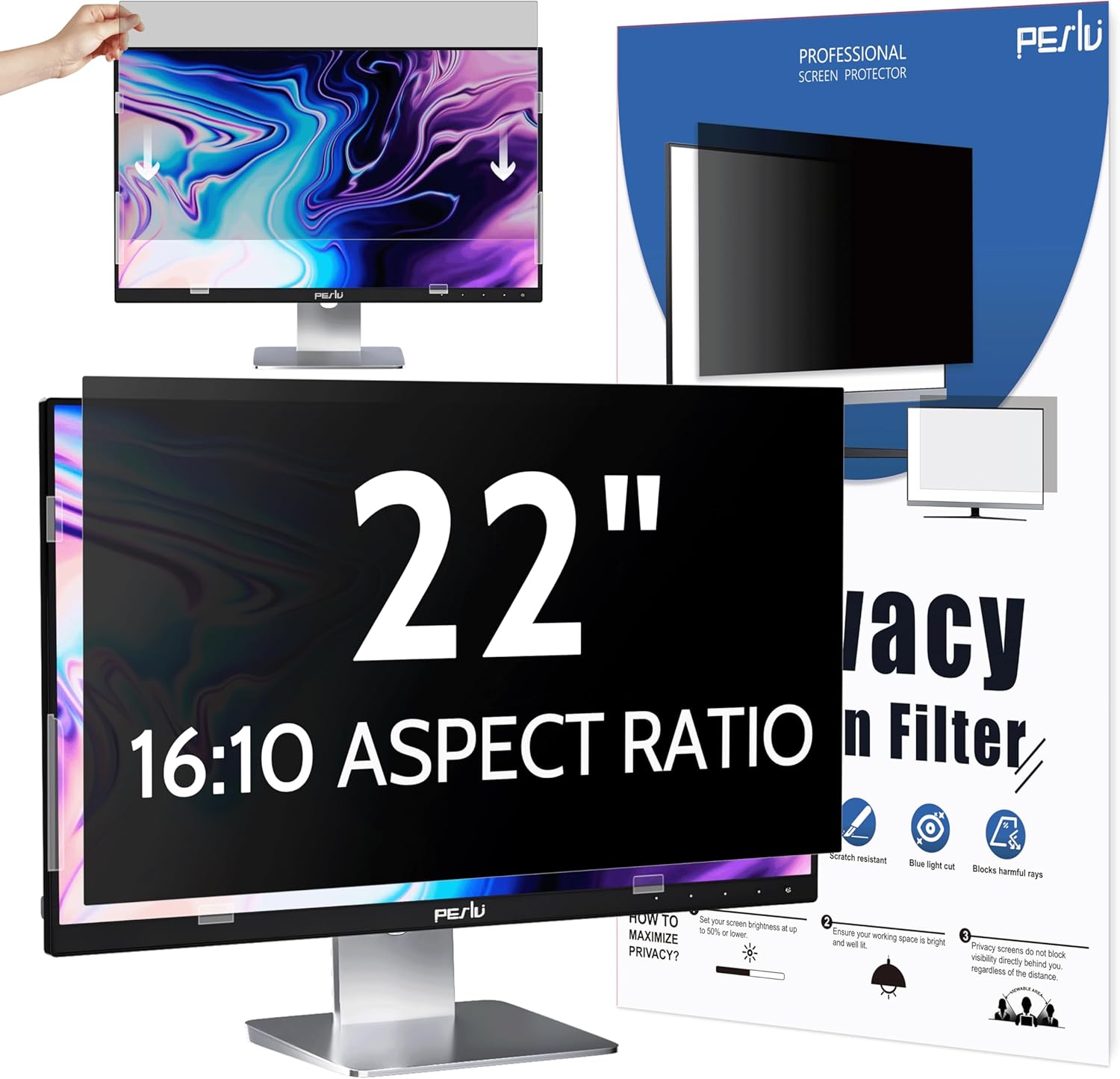 - 【PACKAGE CONTENTS】The package includes one 22 in monitor privacy filter, two sets of transparent double-sided adhesive strips, two sets of transparent slide mount tabs, one screen cleaning kit, and one large size nano-fiber cleaning cloth. Peslv is a factory that integrates production, processing and sales, and we are committed to making you more satisfied. Buy with confidence. [monitor screen privacy shield 22 inch lifetime warranty][Lifetime replacement of attachment parts]