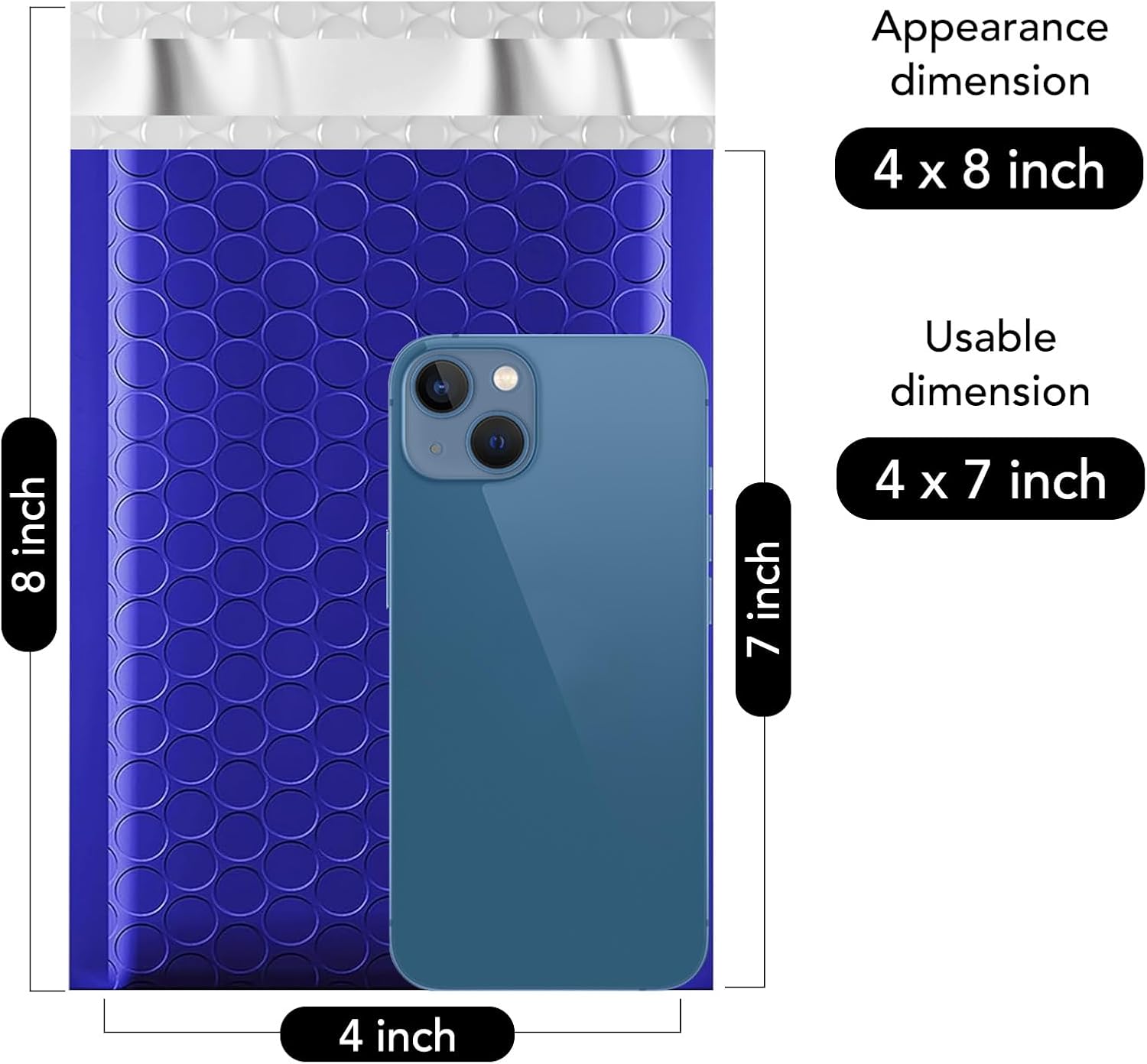 - Perfect Size #000 Blue Bubble Mailers: The poly bubble mailers padded outer size is 4x8 inch, while the inner size is 4x7 inch. It is very suitable to transport for jewelry, makeup, cards, phone case, lips, photos,handcraft and more. Great for small business packing.