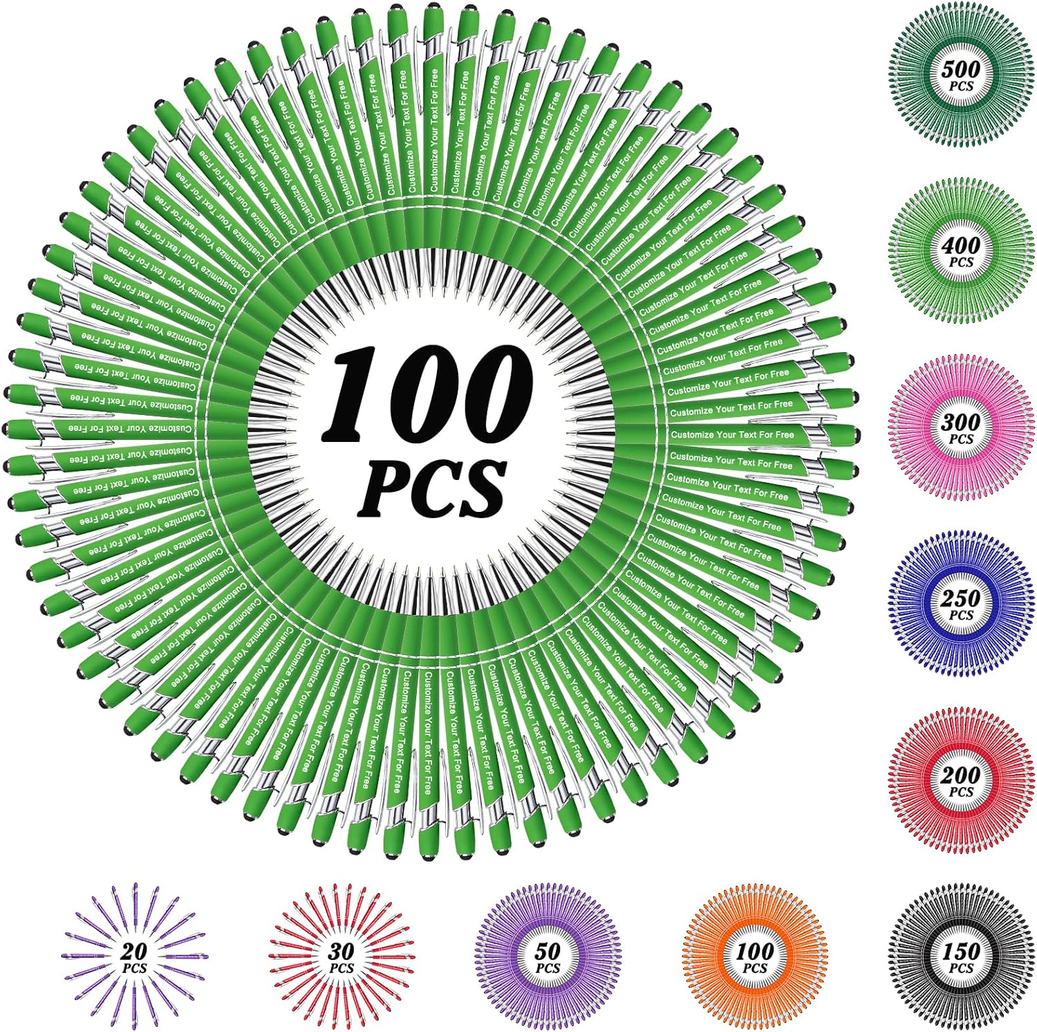 - ā Custom Pens Bulk: We provide 50+/100+/150+/250+/300+/400+/500 pcs pens for you to customize. You can leave any text you need on the pen, and we will engrave it perfectly on each pen. These multi-colored pens with perfect craftsmanship will be the best choice for parties, conferences, trades, companies, churches, etc.