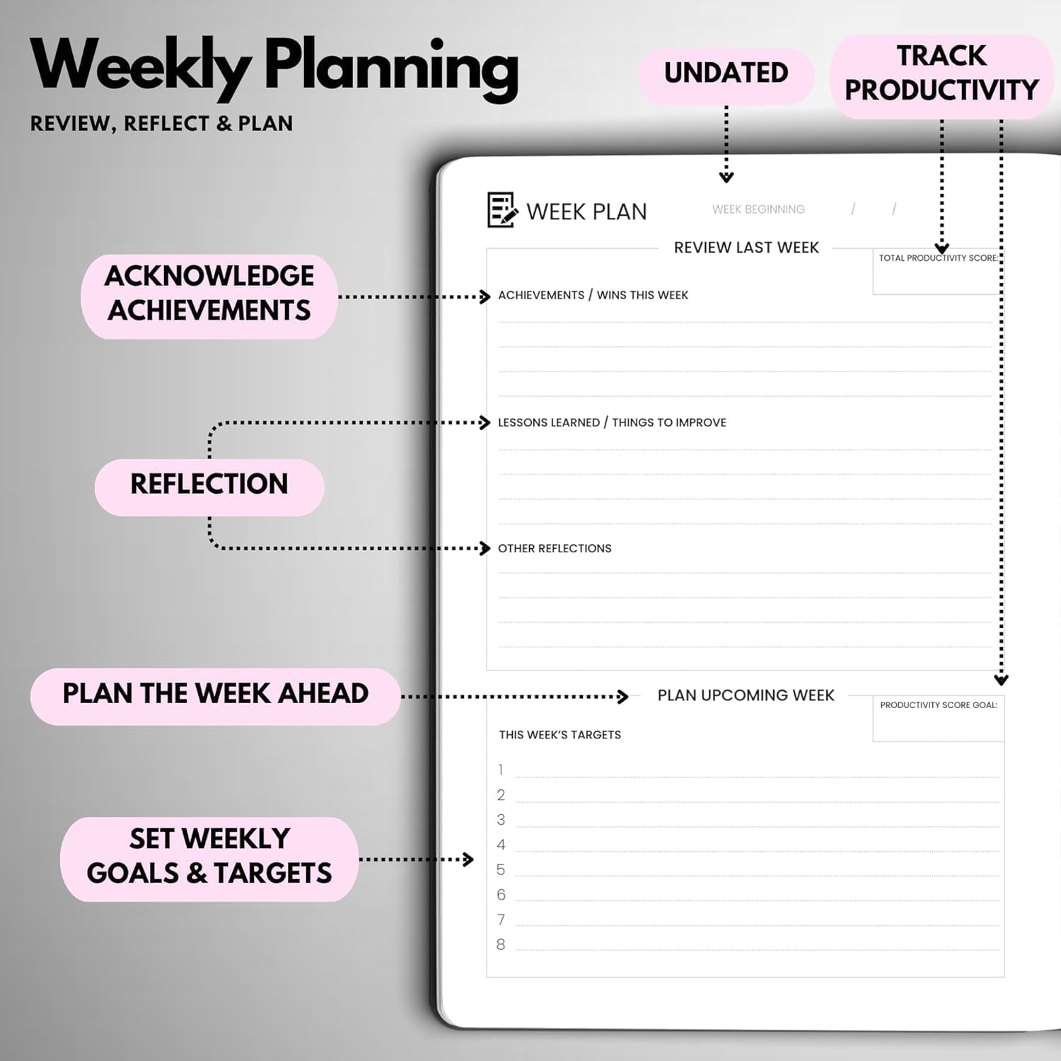 - START ANYTIME & STAY CONSISTENT – With 14 weeks of undated daily planning pages, plus weekly and monthly review sections. You can begin anytime, improve your time management and build a consistent planning habit on your own terms.