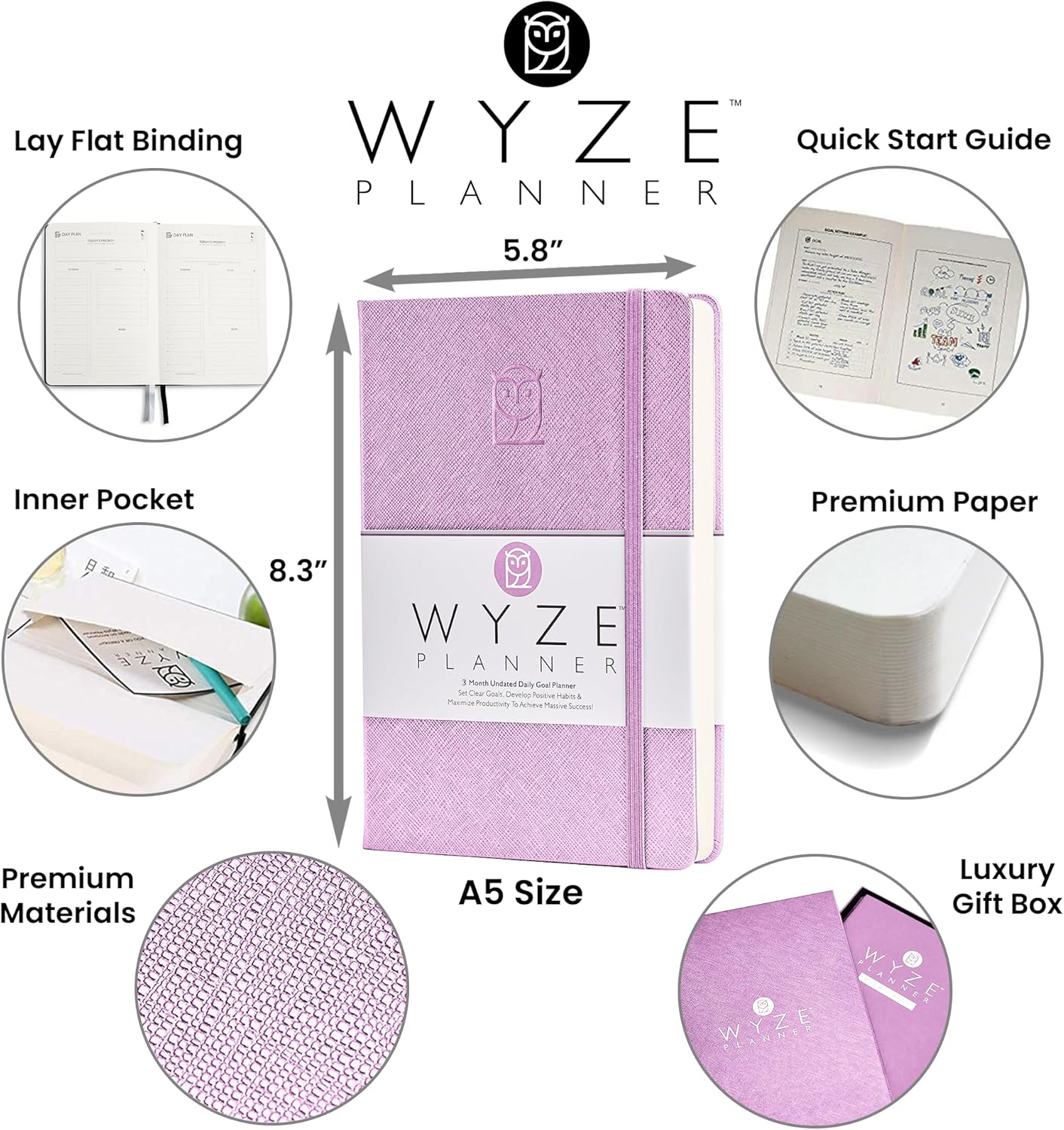 Undated Daily Planner – 3-Month A5 Productivity Organizer with Full Page Per Day, Hourly Schedule, Goal Setting, Habit Tracker, Weekly & Monthly Pages – Hardcover Time Management Notebook (Lilac)