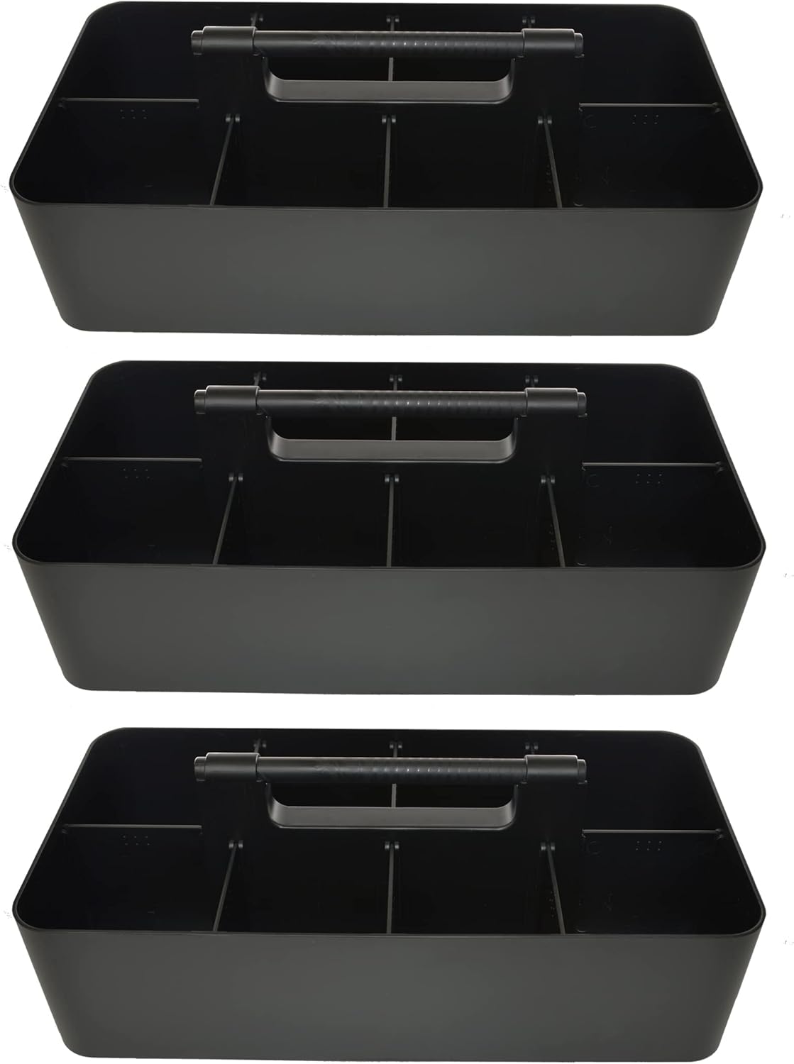 -Large Portable Caddy, DIY Dividers, 8 Compartments, School Office Supplies Home Business Organizer,Portable Basket with Handle Storage Organizer Modern Made in USA (3 PACK, Black)