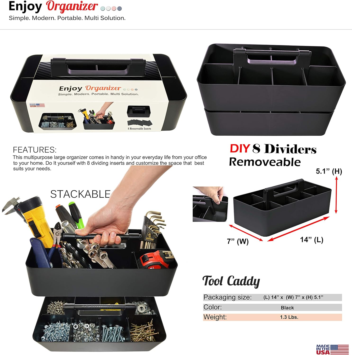 -Large Portable Caddy, DIY Dividers, 8 Compartments, School Office Supplies Home Business Organizer,Portable Basket with Handle Storage Organizer Modern Made in USA (6 PACK, Black)