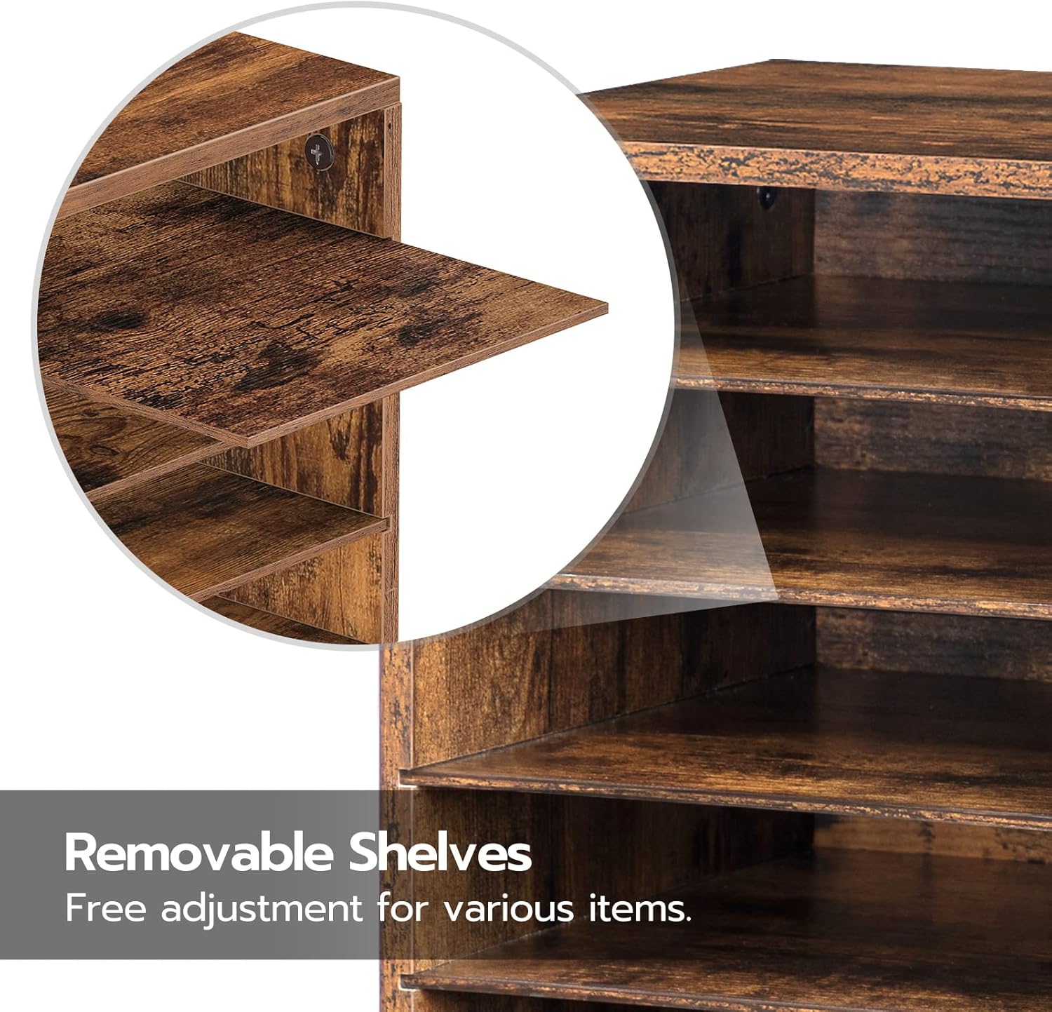 - Vintage Simplicity, Stylish Decoration: I wear a rustic suit and have a simple structure with two rows of 12 partitions design. The spacious top can put beautiful artwork while the wood pattern and smooth finish enable me to decorate your home