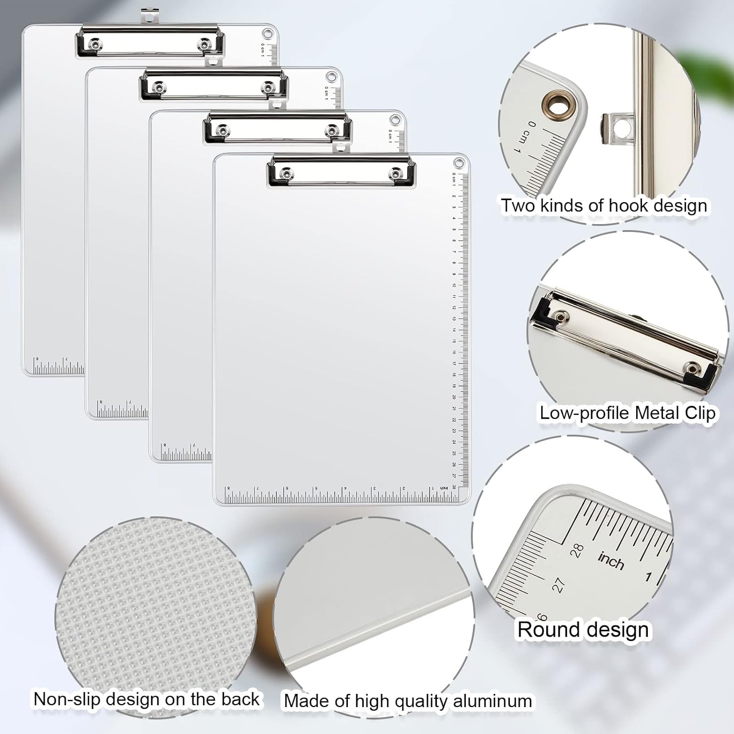 16 Pieces Metal Clipboard, A4 Letter Size 12.5 x 9 Inch Aluminum Edge Document Holder with Scale Aluminum Edge Clipboard with Low Profile Clip Vertical Silver Hardboard for Office