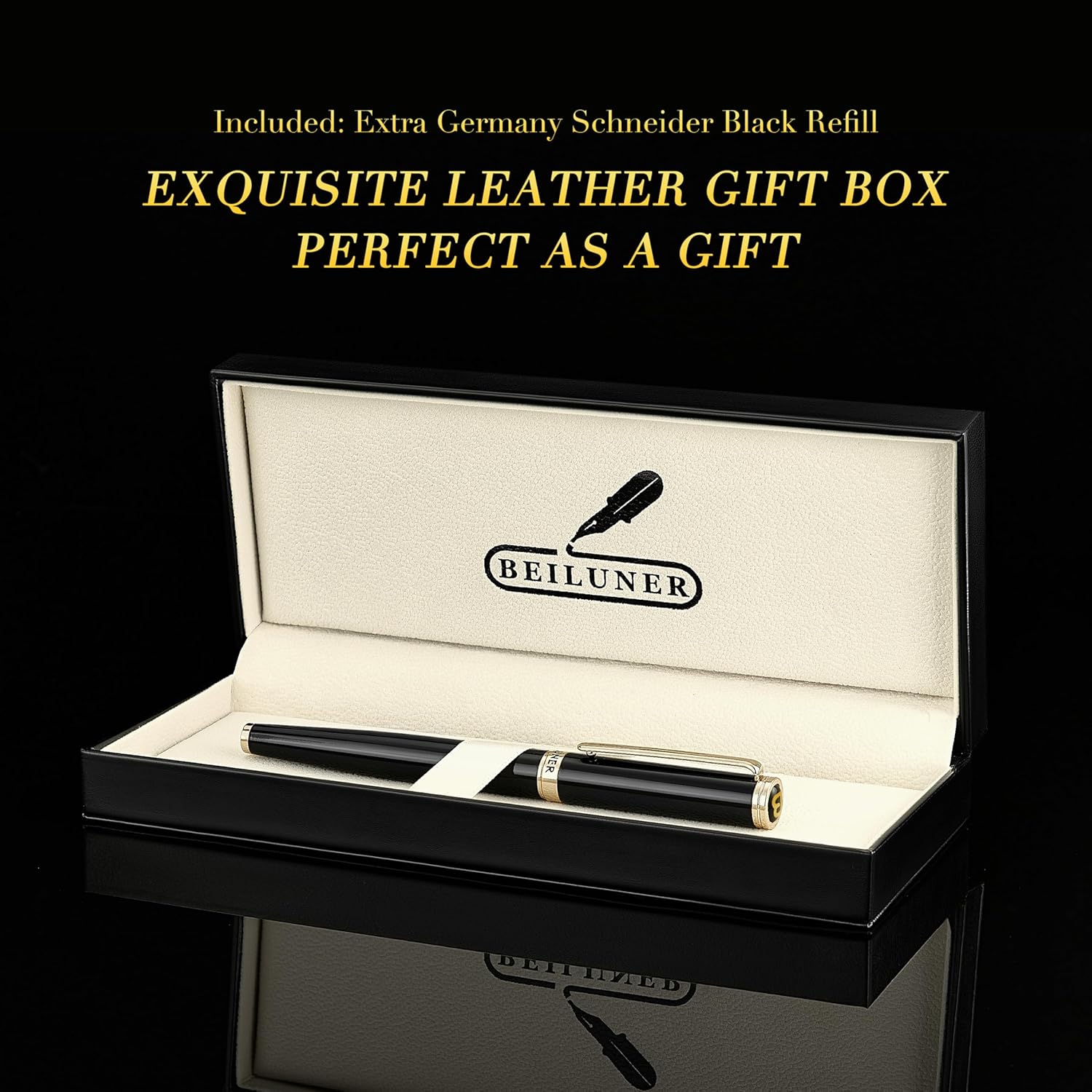 BEILUNER Luxury Rollerball Pen,24K Gold Trim,Noble and Elegant Designs,Schneider Ink Refill, Best Roller Ball Pen Gift Set for Men & Women, Professional, Executive Office, Nice Pens