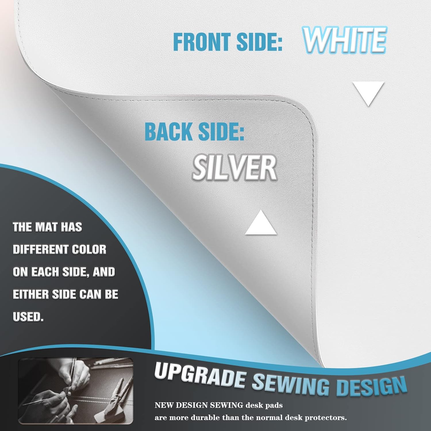 K KNODEL Desk Mat, Blotter, Dual-Sided Office Desk Pad, Waterproof Desk Mat for Desktop, Desk Blotters, PVC Leather Pad Protector (White, 23.6" x 13.8")