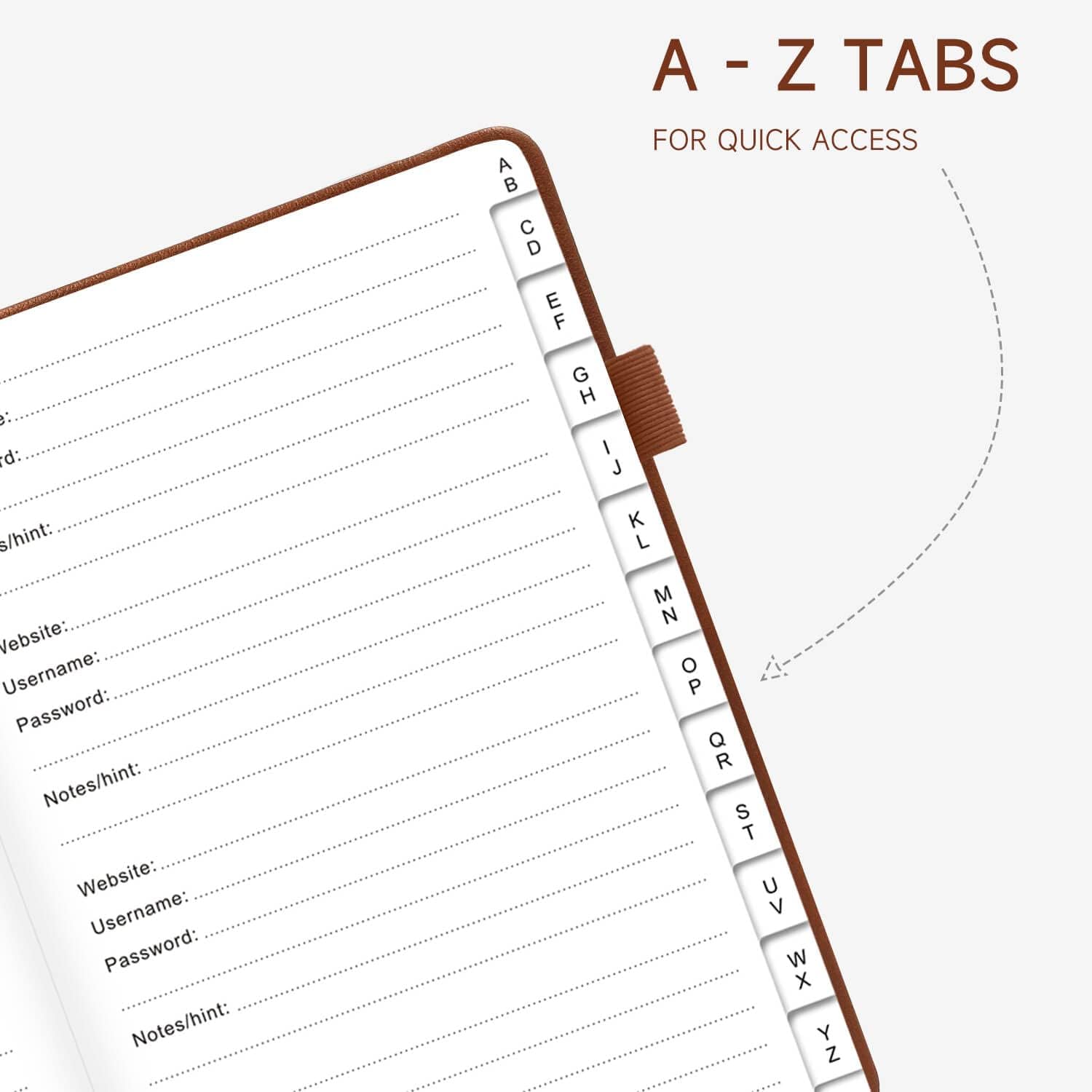 - Alphabetical Tabs (AB - YZ) - Alphabetical tabs allow you to organize your login details and help you find your passwords quickly, no more annoying searches!
