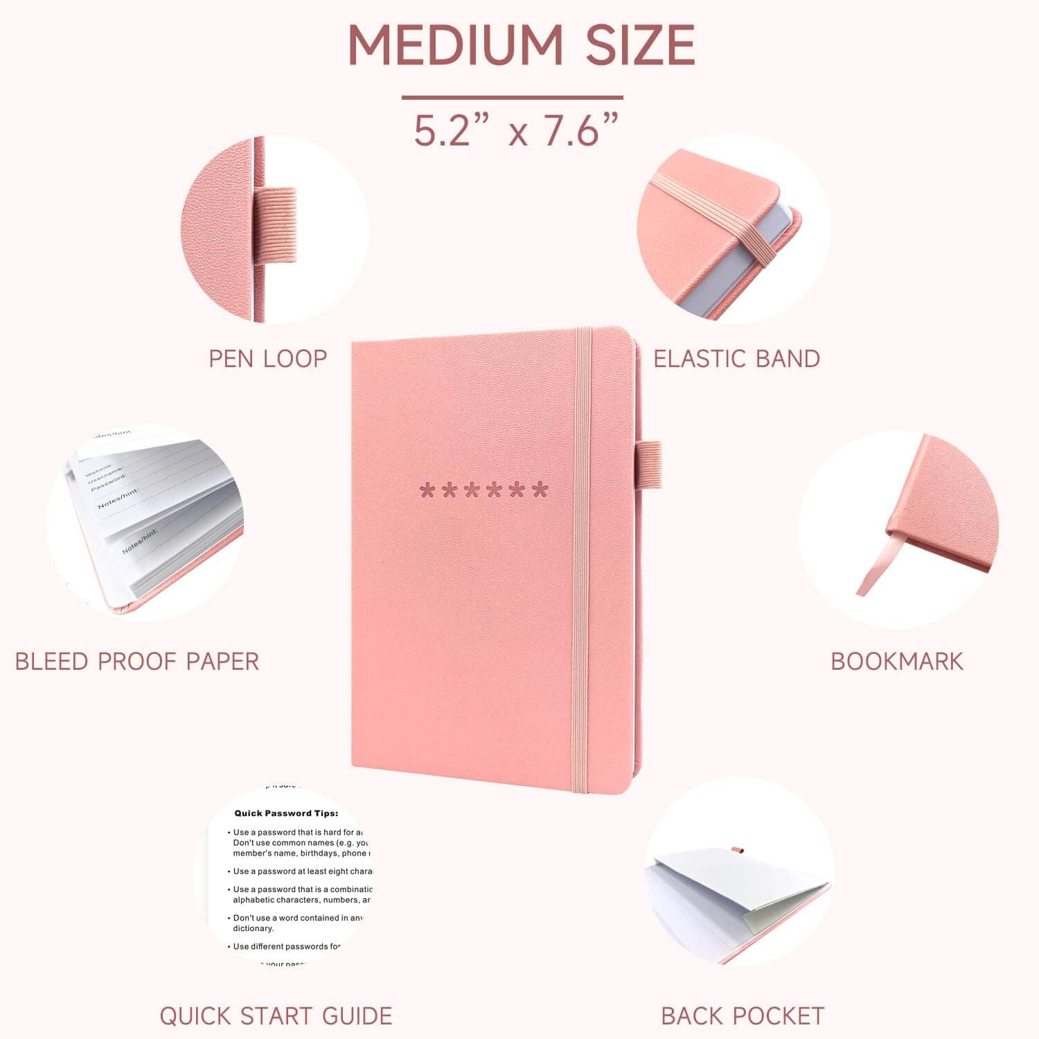 - Premium Quality - TUPARU password notebook's hardcover is made of high-quality leatherette material which looks really beautiful on the outside. And this internet address book comes with an accordion back pocket, one ribbon bookmark, a pen holder, and an elastic band.