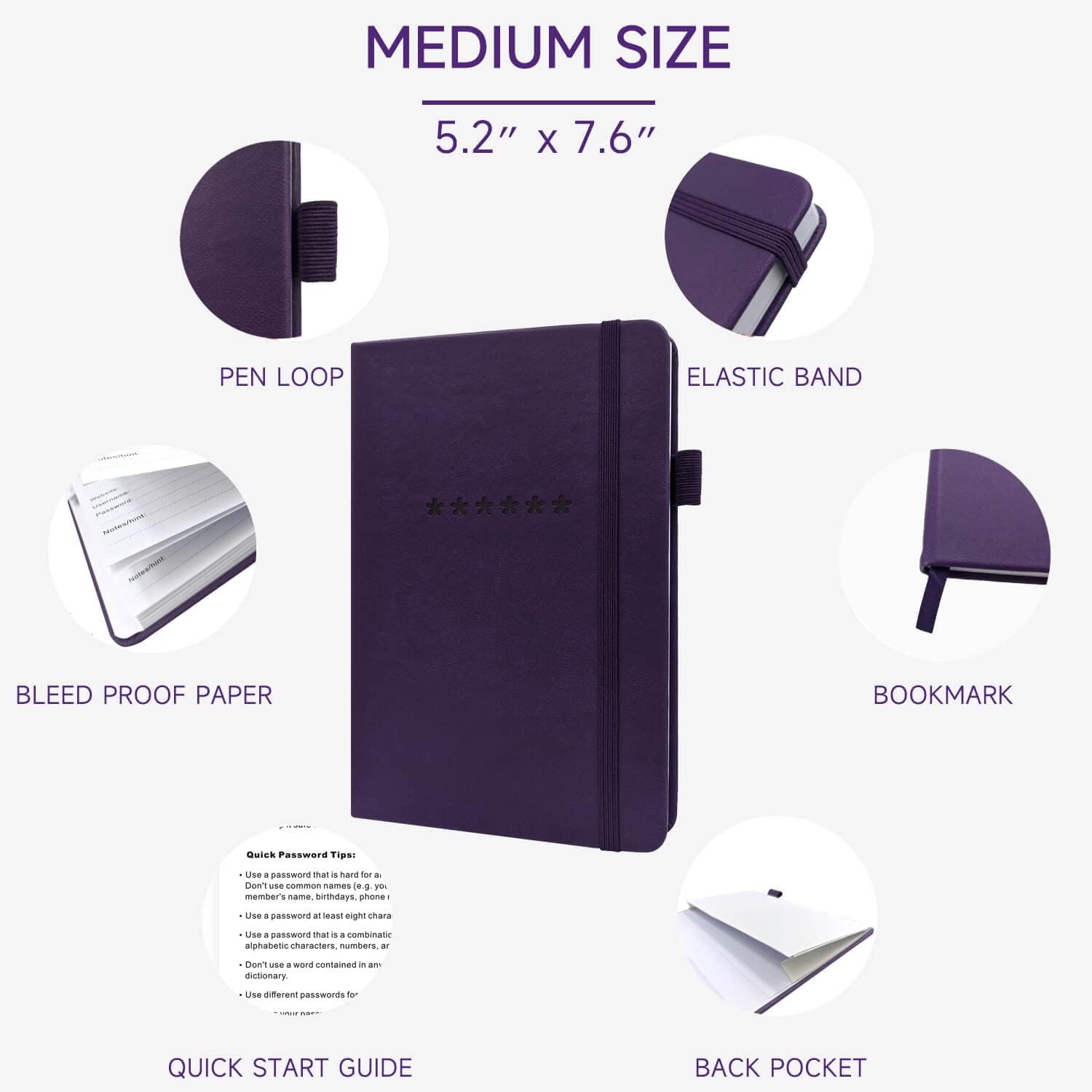 - Premium Quality - TUPARU password notebook's hardcover is made of high-quality leatherette material which looks really beautiful on the outside. And this internet address book comes with an accordion back pocket, one ribbon bookmark, a pen holder, and an elastic band.