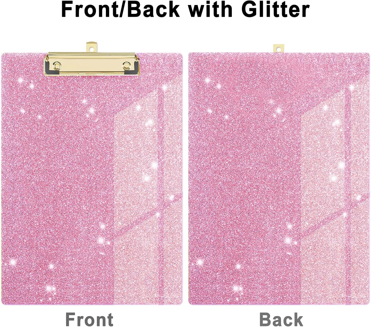 - 【Fashion Glitter Design】Sturdy 3mm office clipboard with full double-sided glitter, add a little color to your desk! And when set it down randomly, its bright, classic and chic glitter elements made it easier to spot than a plain one!