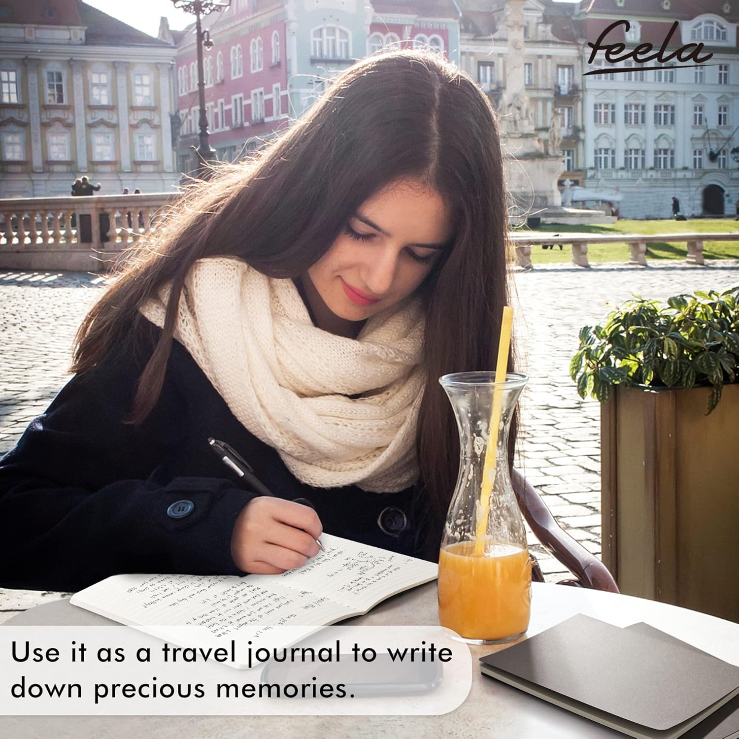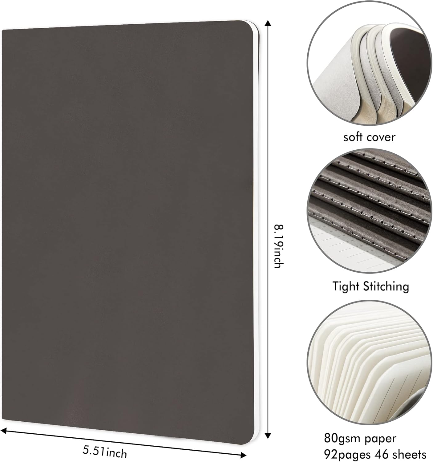 - Feela 8 Pack Soft Cover Journals include 8 gray A5 college ruled soft cover travel journals. 250 GSM colored paper cover outside and 80 GSM smooth writing lined pages inside.