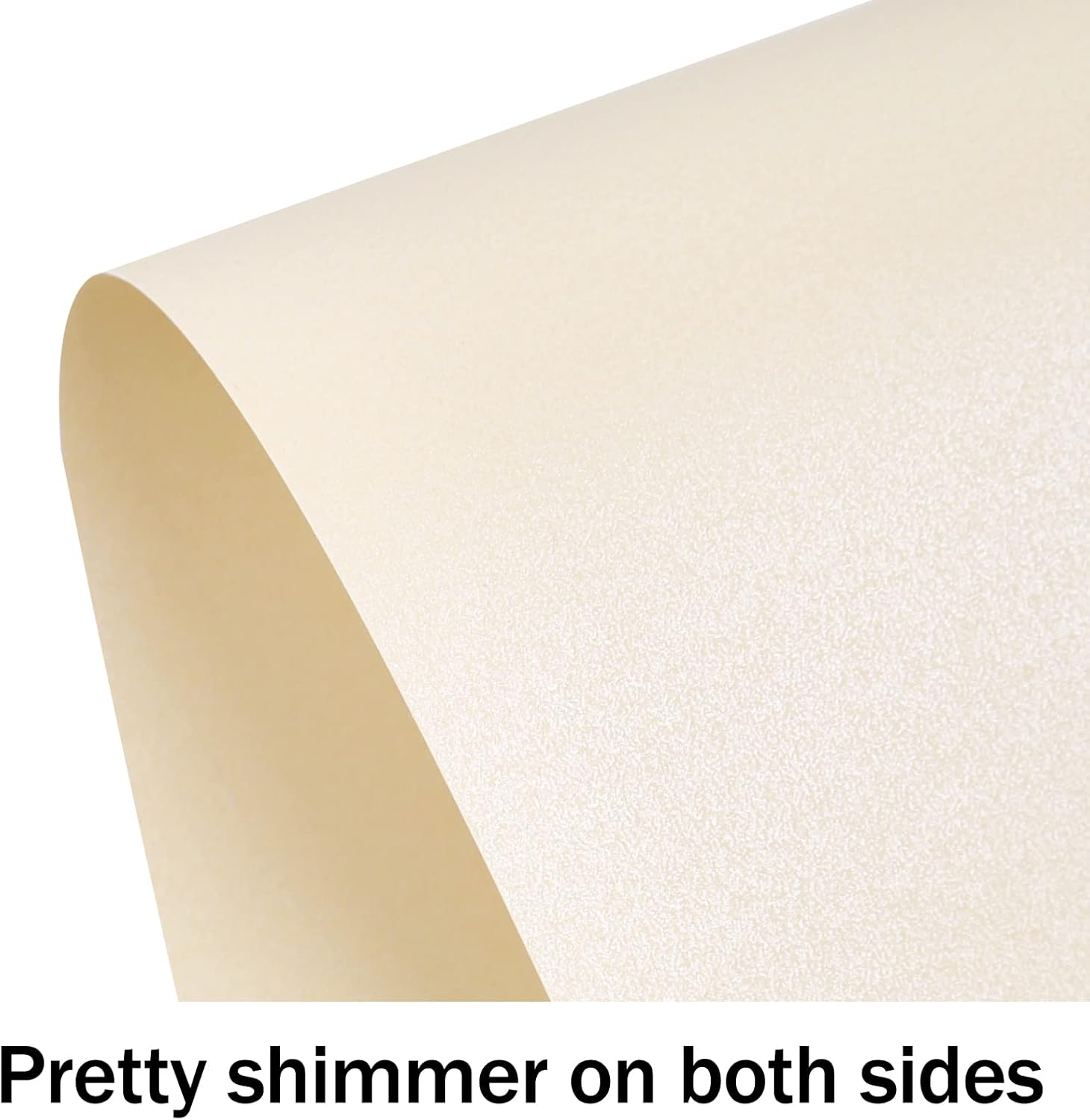 100 Sheets Cream Shimmer Cardstock 8.5 x 11 Off White Paper, Goefun 80lb Ivory Card Stock Printer Paper for Invitations, Certificates, Crafts, Card Making