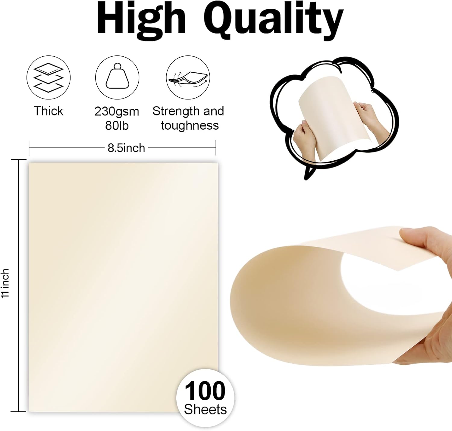 - Paper Dimension: Each package includes 100 sheets of cream cardstock paper, measures 8.5 x 11 inches in size, 230 grams in weight