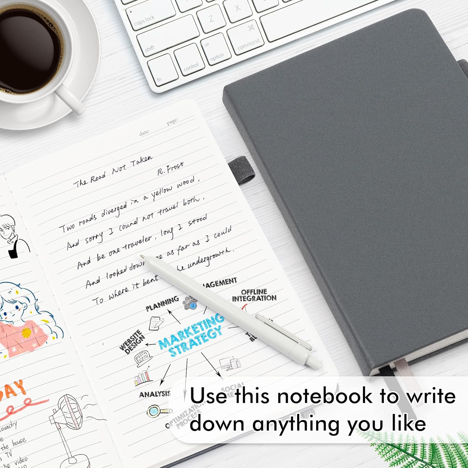 - These classic ruled notebooks are all blank inside with 128 lined pages (64 sheets), which would be convenient for daily usage. The hard cover journal has a water-resistant faux leather cover, round corners and bookmarks, which is designed to lay and open flat. There’s a “date/page” column on the top of every page. You can use it as a reminder to let you remember those important dates and find the page you want in a very short time.