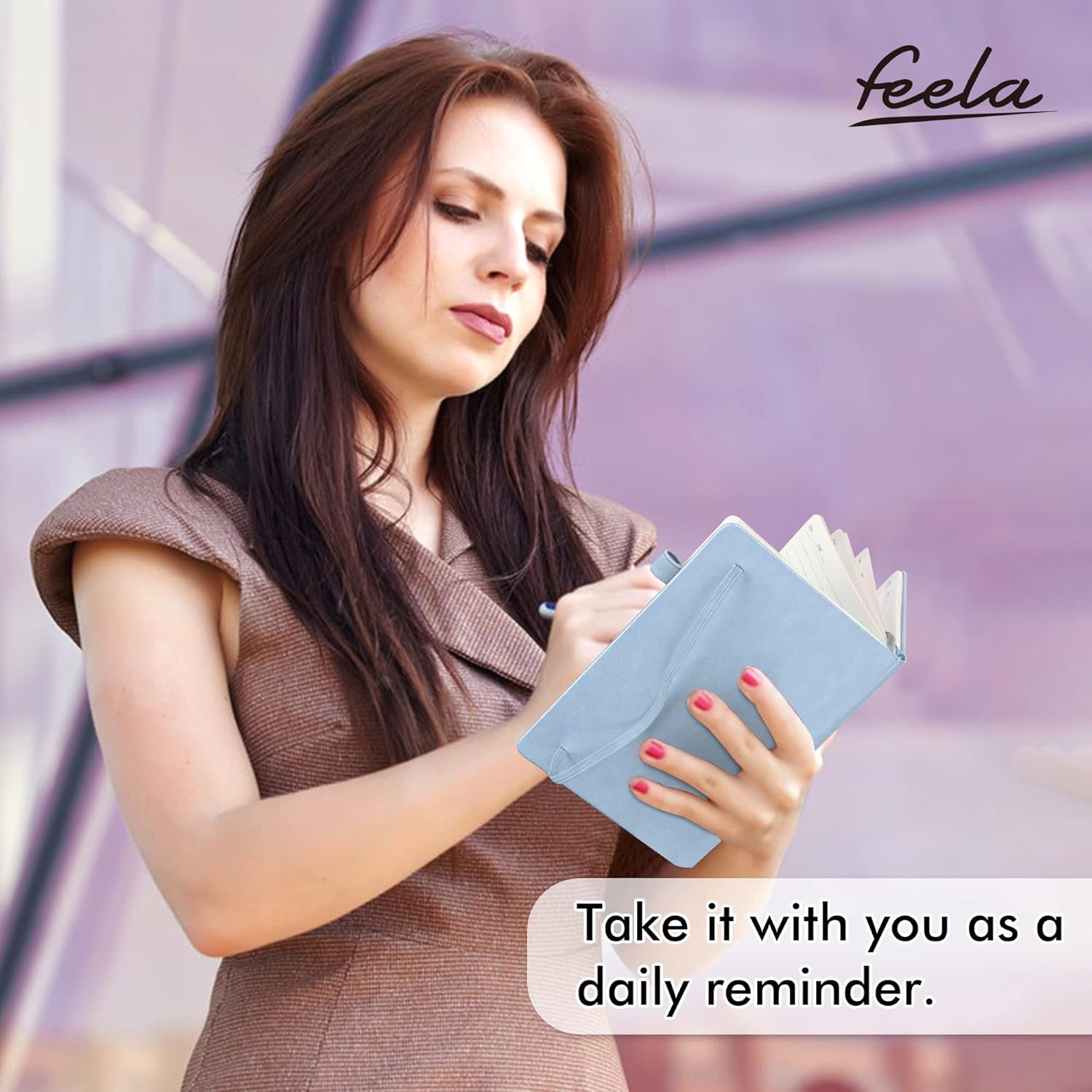 feela 8 Pack Notebooks Journals Bulk, Hardcover Notebook Classic Ruled Lined Journals with Pen Holder for Women Girls School Business Supplies, with 8 Black Pens, 120 GSM, 5.1”x8.3”, A5, Light Blue
