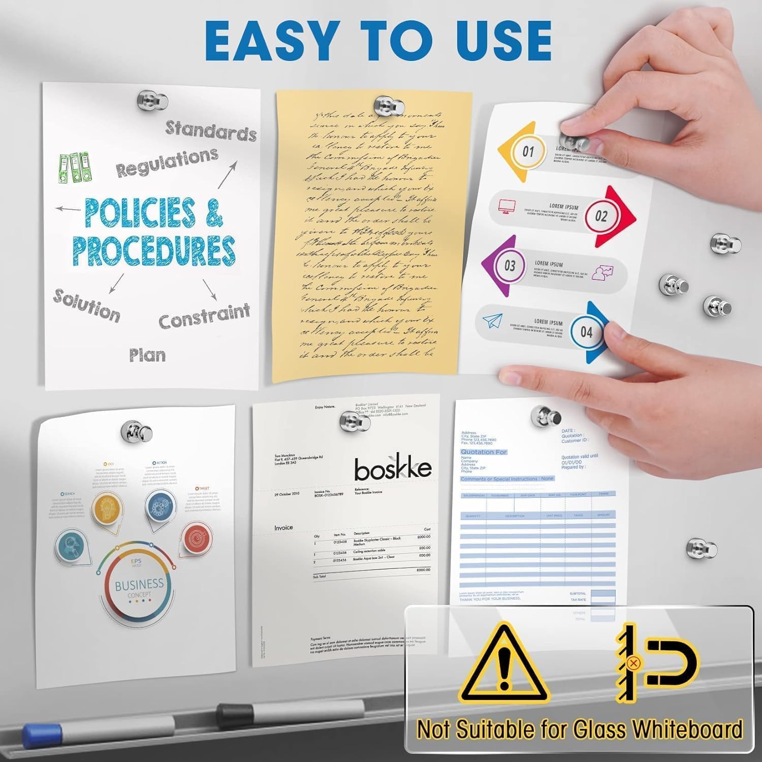 - 【Wide Range of Applications】 Ideal for use in offices, kitchens, classrooms, and more, these magnetic push pins conveniently secure notes, photos, posters, and cards to whiteboards, bulletin boards, magnetic maps, file cabinets, and other magnetic surfaces.