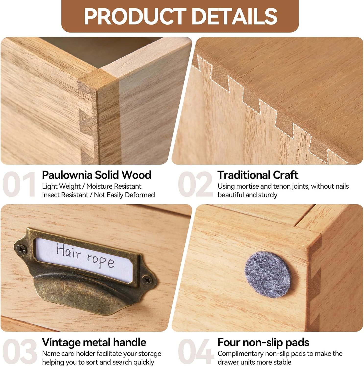 - [WOODEN STYLE ]: The wood desk drawer organizer is made of selected solid wood with brisk and beautiful colors, clear natural wood texture, excellent moisture resistance.