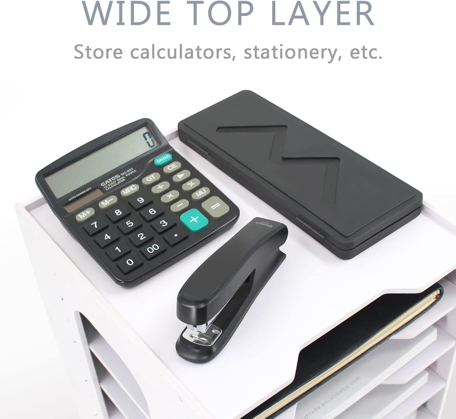 - SUTIABLE SIZE: The assembled file organizer measures about 12''D×10''W×15''H. The updated white desk organizer come with 5 removable tray, you can set up the compartments dimensions as you need, Store different documents by changing the number of tray to build more classification spaces to meet your needs, keep your desk nice and tidy. It is perfect for home, office, school etc