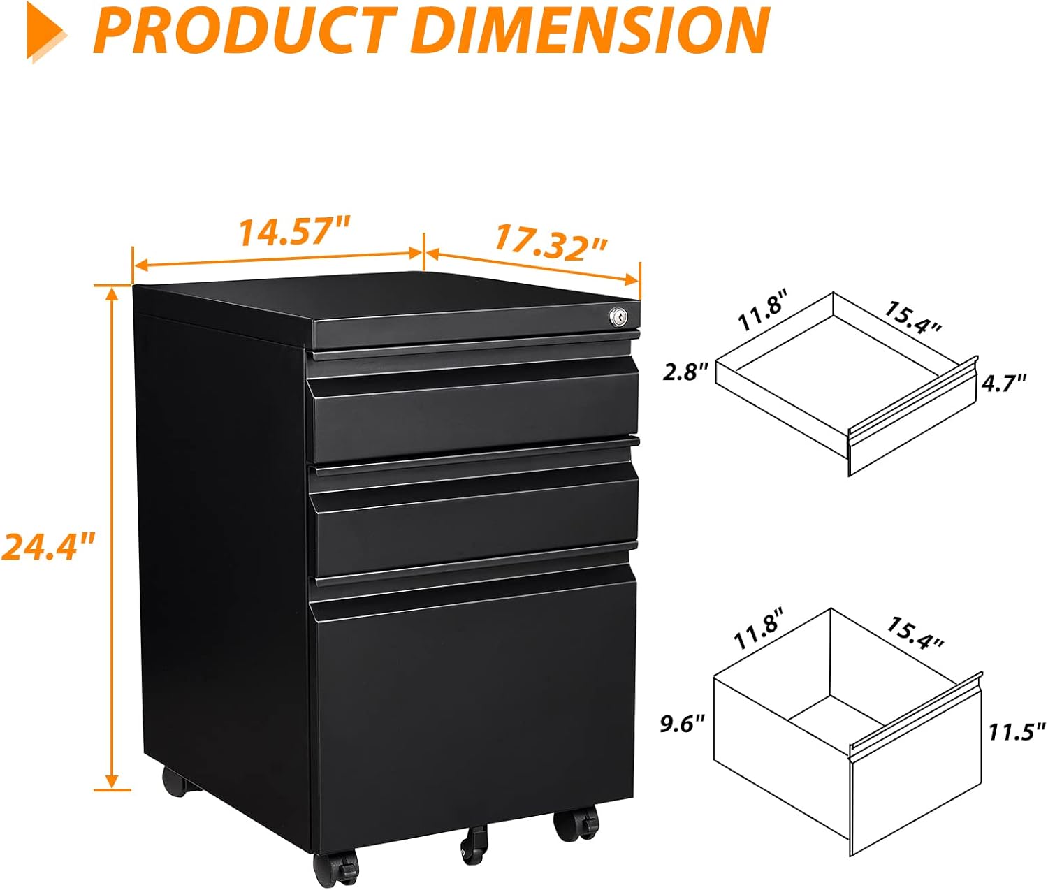 - ăMobile File Cabinetă: Equipped with 2 lockable casters + 2 360° swivel casters + 1 anti-tilt wheel, you can easily and safely move it. The 360° swivel casters make it easy to turn in any direction, while the lockable casters provide braking and the center support wheels prevent tipping, allowing you to place the cabinet stably under a table or elsewhere.