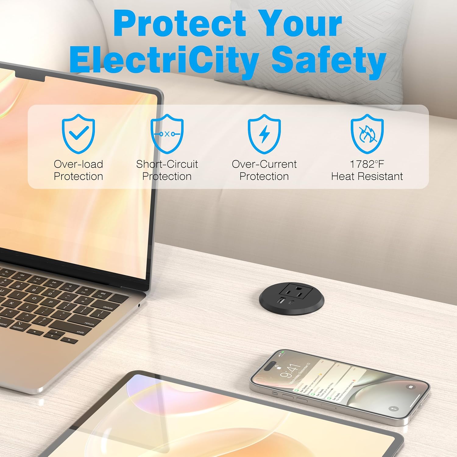 - Fits Standard 2 Inch Cable Holes: Suitable for all types of desks and countertops, including coffee tables and workspaces. The compact design ensures flexible installation and provides a tidy power solution.