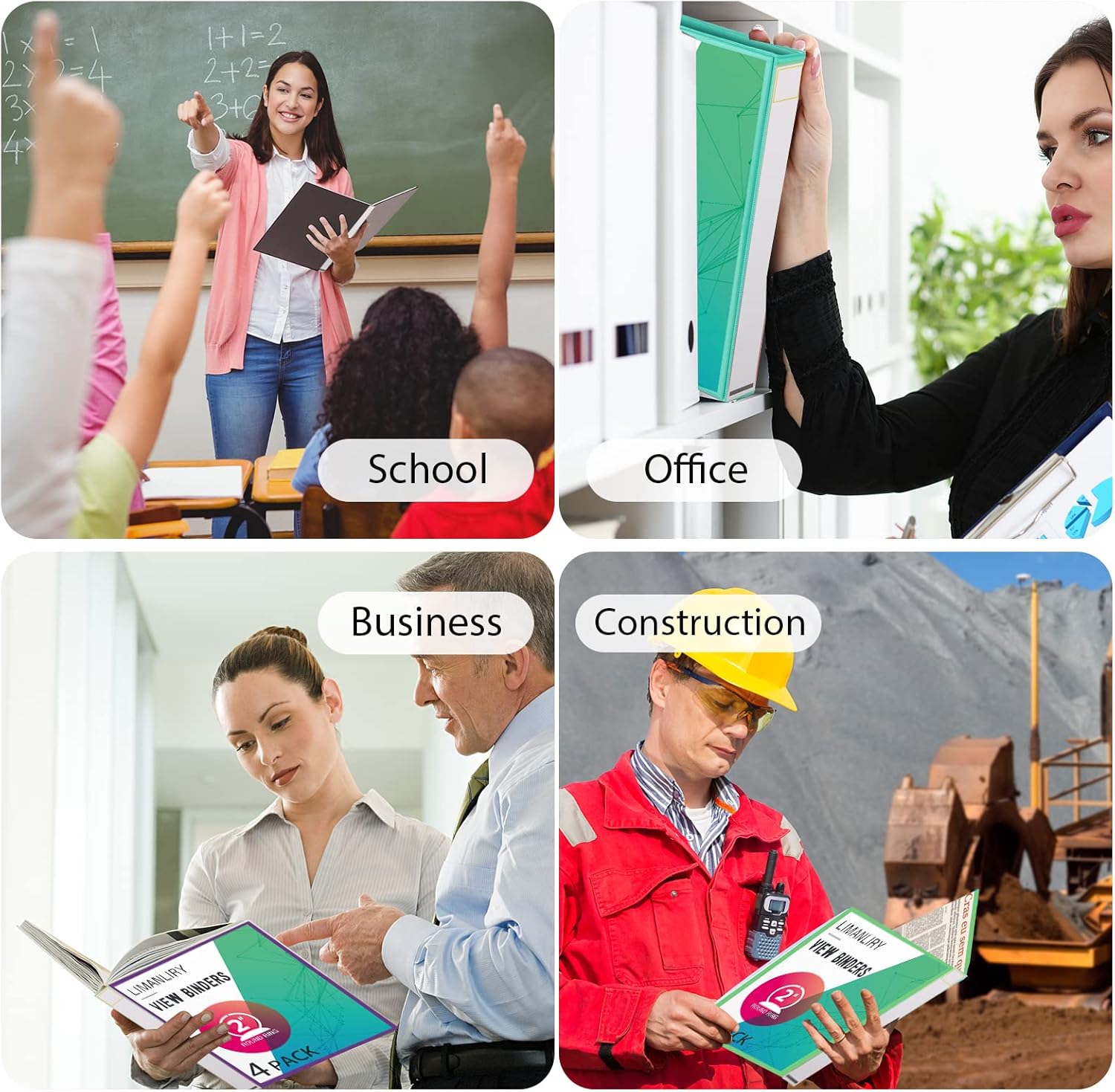 - Colored View Binders:4 pieces 2" 3-ring binders:Green,Purple,Red,Blue,Suitable for home, office, and school