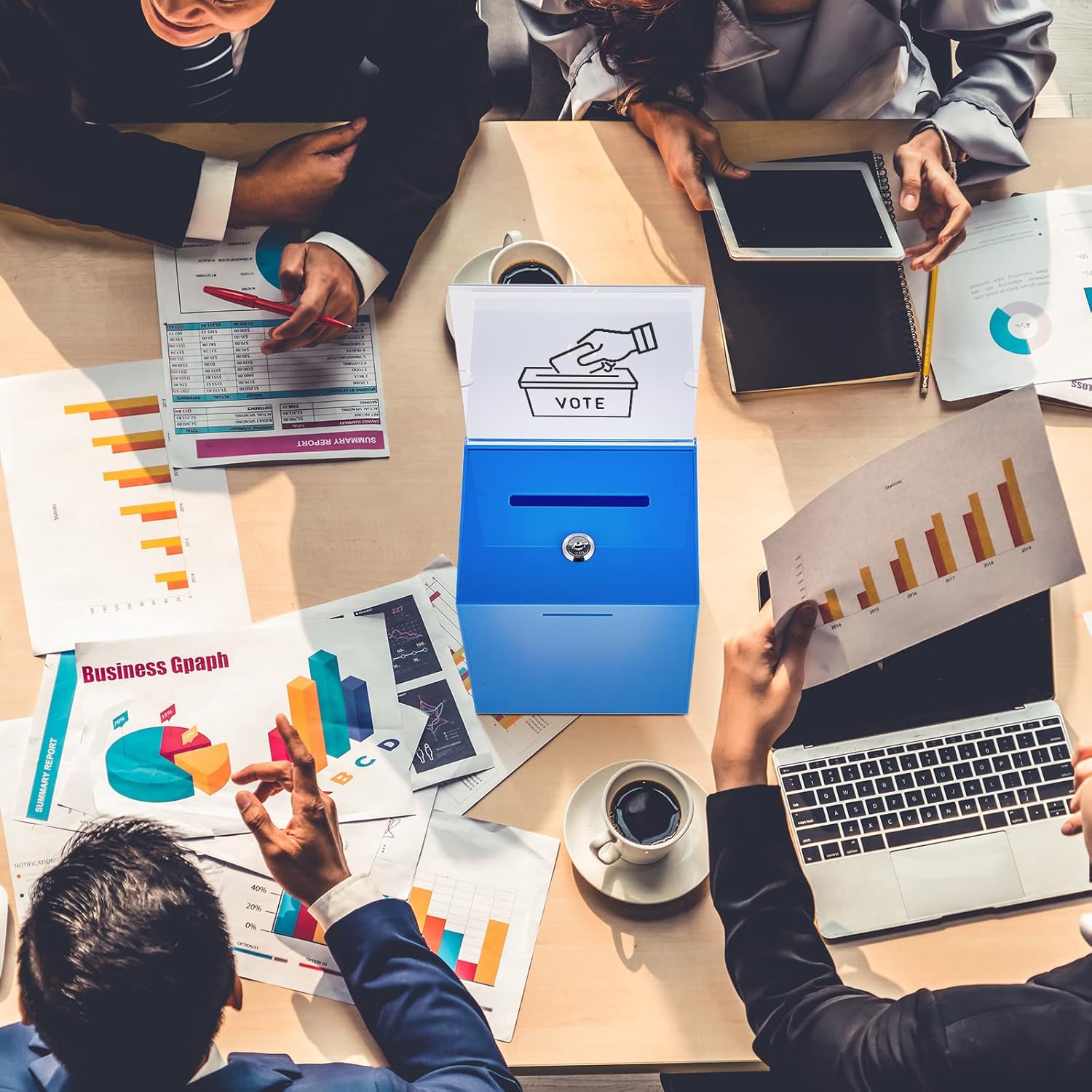 - Safe and Practical: the suggestion box with lock is equipped with 2 keys, can effectively and conveniently keep away from losing some important things, and is available in blue color, safe and mysterious; What's more, the sign holder is removable, can show multiple themes and signals