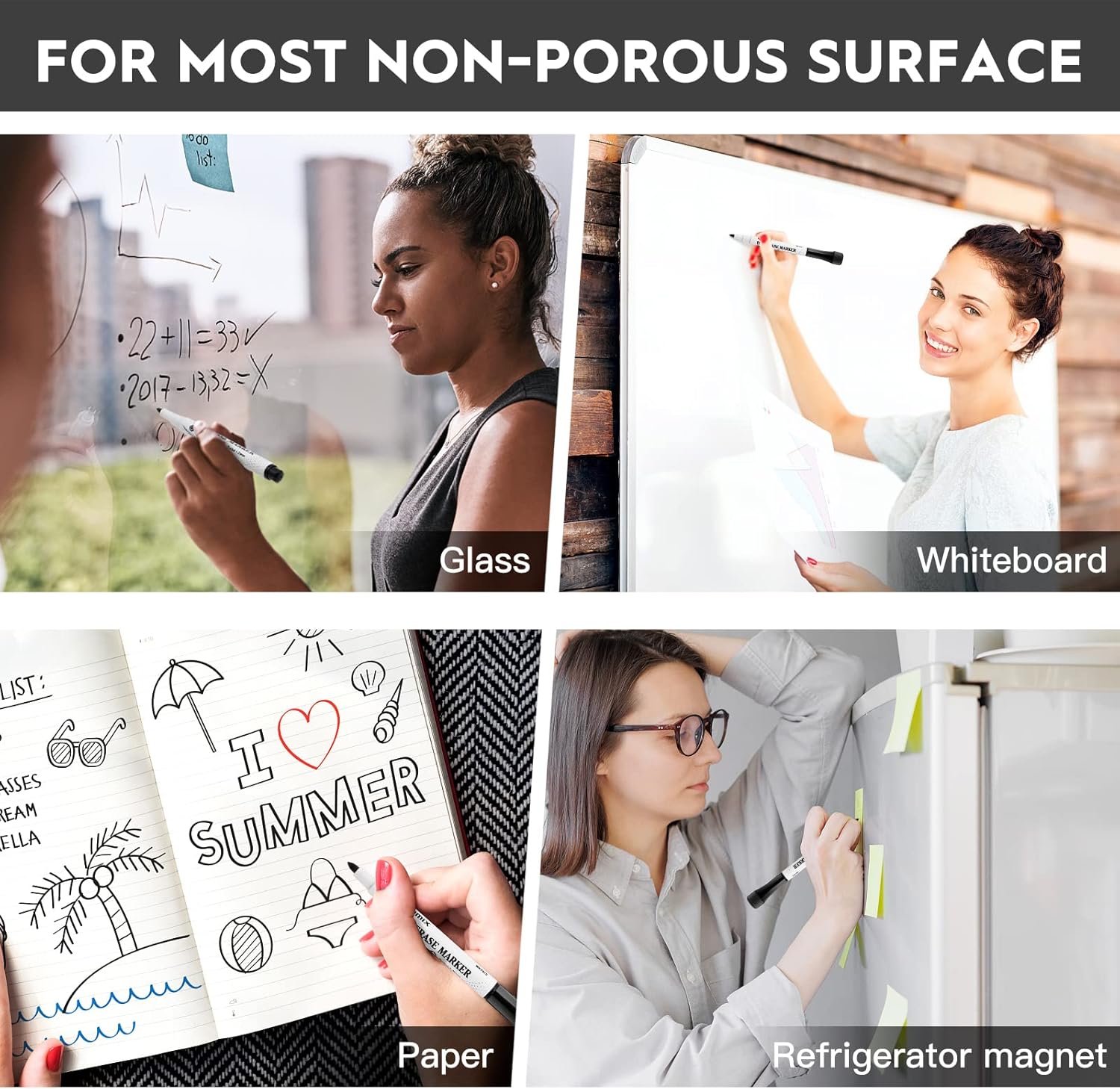 - Magnetic Erase Cap๏ผWith the design magnetic marker caps erasers, you can stick it on any magnetic surface such as refrigerator where you just need to take it down and write. The eraser tips on each markers cap can make quick corrections and wipe clean.