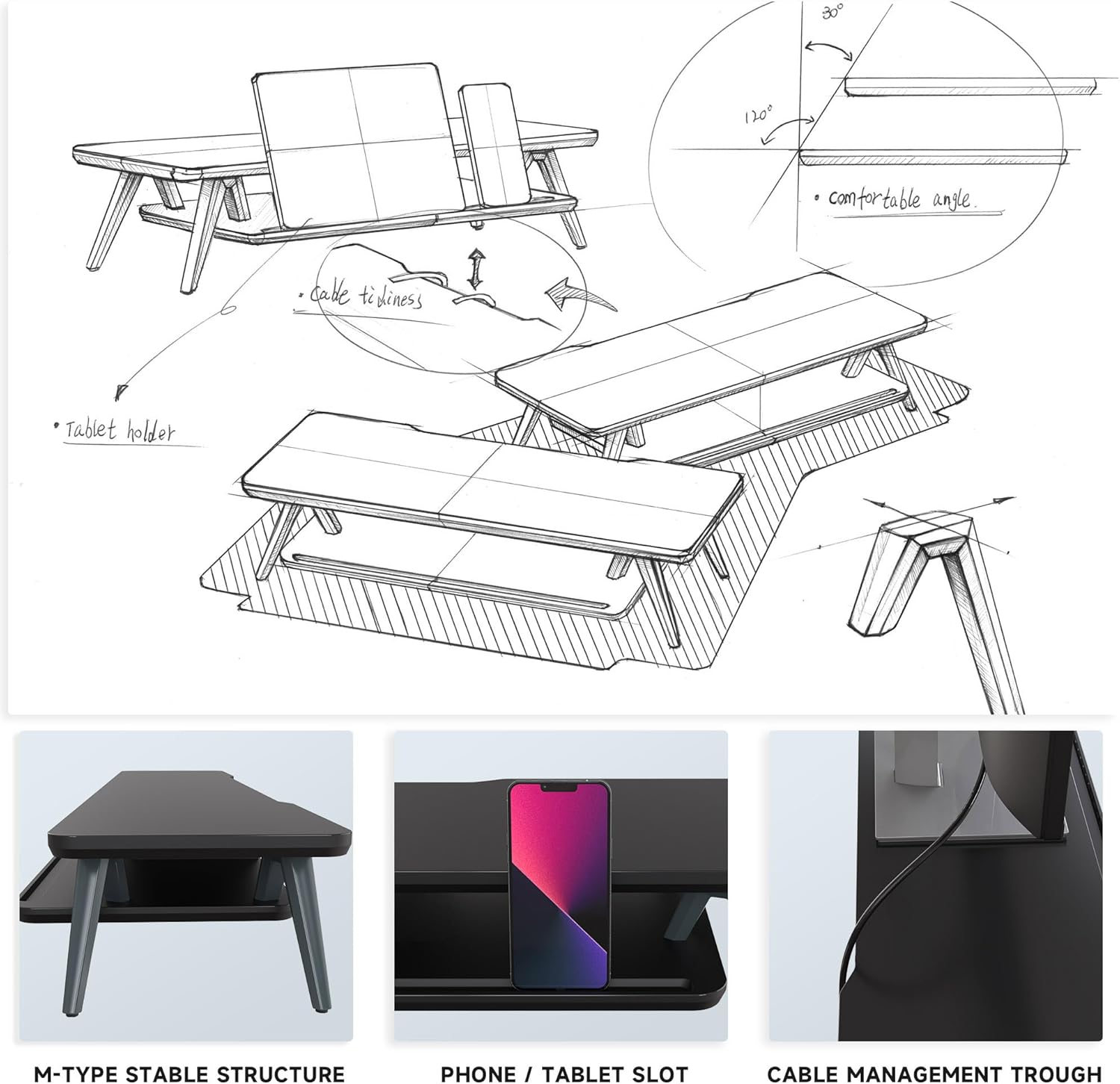 - 【Avoiding Shoulder/Neck Pain】Ergonomic design with 5.7 inches height of the desk stand to keep your screen at the best position, avoiding cervical spine problems caused by long-term bow in the process of working.
