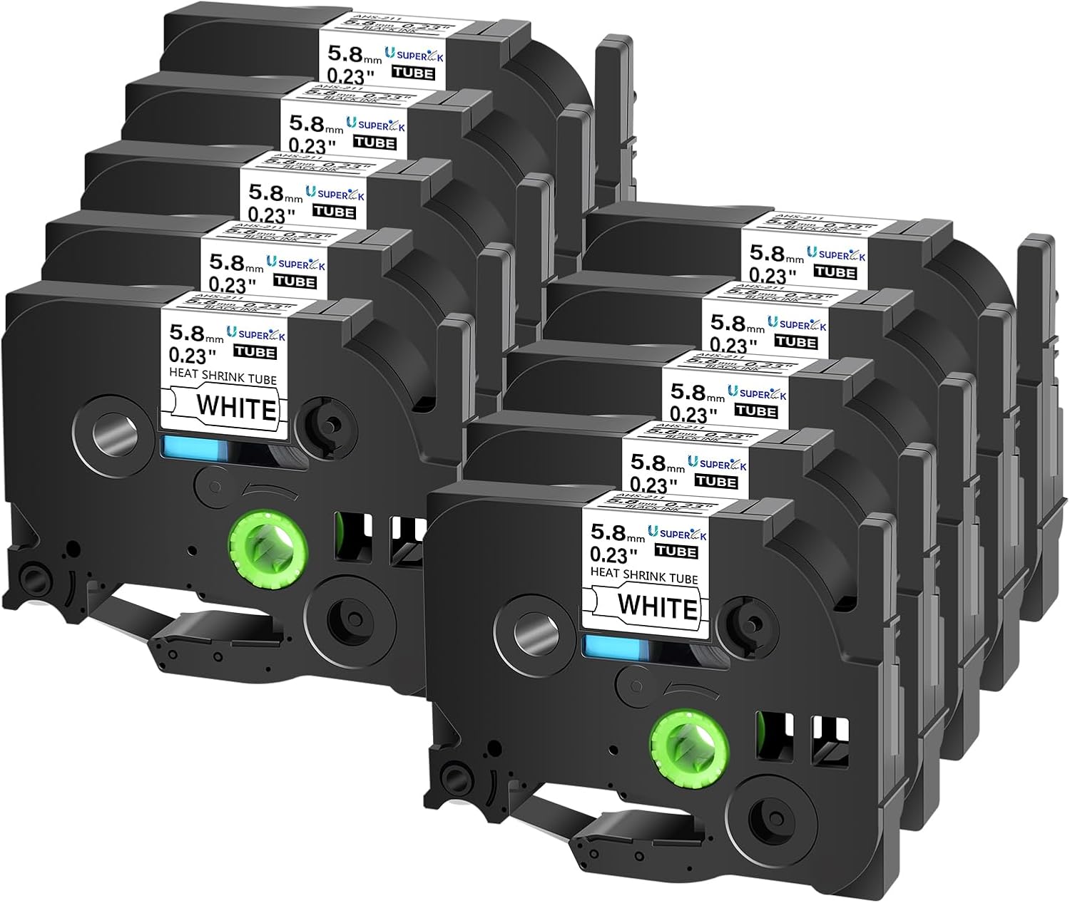 - USUPERINK Alternative Replacement Compatible for Ptouch HSe-211 HS-211 HSe211 HS211 AHS-211 Preminum Heat-shrink Tube Label Maker Tape