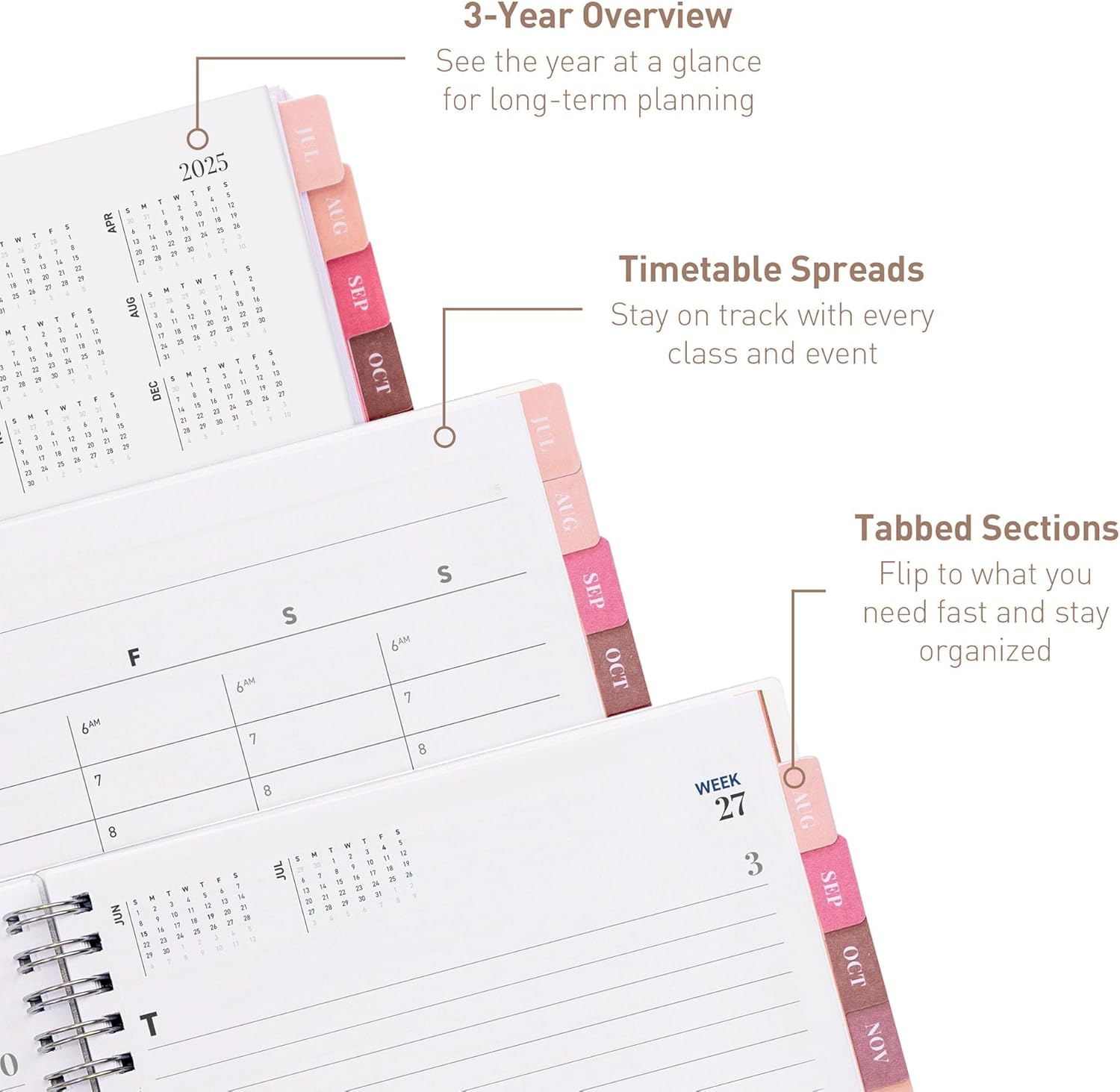 - STAY AHEAD WITH BUILT-IN EXTRAS: Never miss a milestone again. This sleek calendar 2025-2026 includes U.S. holidays, a full 3-year overview, and forward-looking weekly layouts that preview the next month. A reliable 2025 planner that keeps your future visible, from family vacations to project deadlines. Feel the peace of knowing everything’s under control.