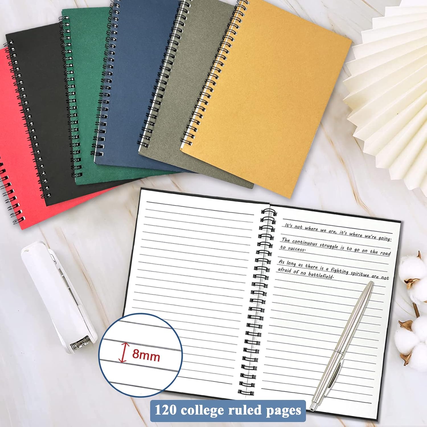 - 【SPIRAL JOURNAL NOTEBOOK】The wide ruled spiral bound notebooks can be opened 360°freely without folding creases, also facilitate you to rip pages, the double-line spiral binding makes the edge firm and prevents the paper from scattering