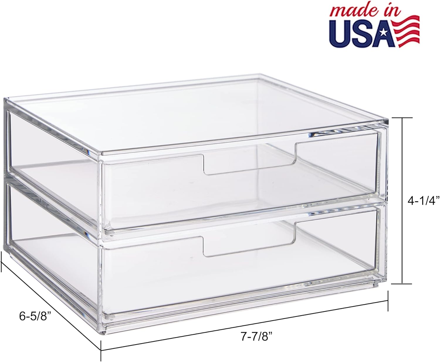 - Compact Yet Spacious: Each set has 2 double-drawer units (4 drawers total). Each individual drawer measures 7.5" W x 6.44" L x 1.75" H, offering ample storage capacity while fitting perfectly into various spaces. The overall dimensions of each double-drawer unit are 7.88" W x 6.63" L x 4.25" H. The compact design is ideal for tight spaces, allowing you to tailor your storage to fit any room, be it a bathroom, bedroom, kitchen, or office, and adjust your organization as your needs evolve.