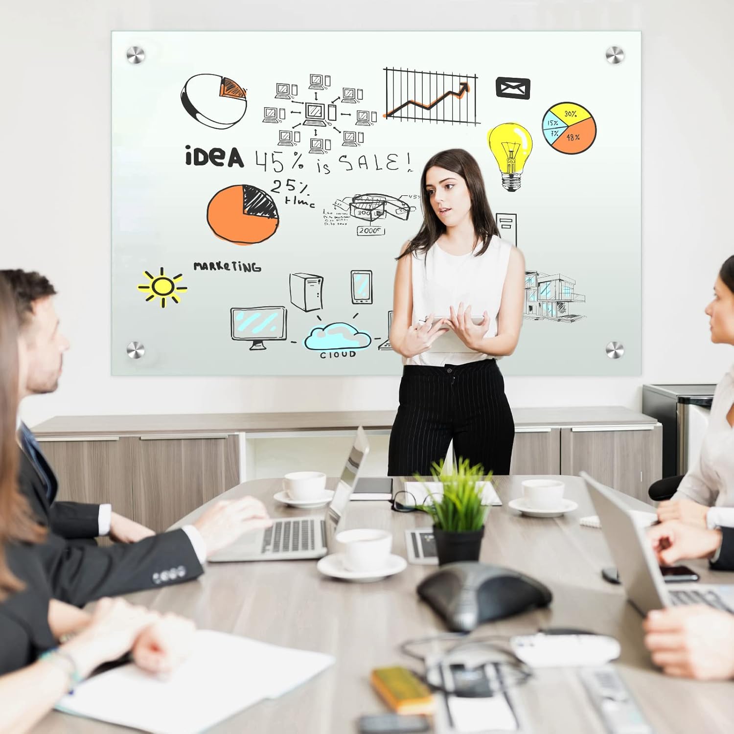 - Improve Work Efficiency: The non-absorbent glass can make you write, erase and rewrite on a clean surface. Stain resistant and prevent ghosting, always make your meesage show clearly on the whiteboard.