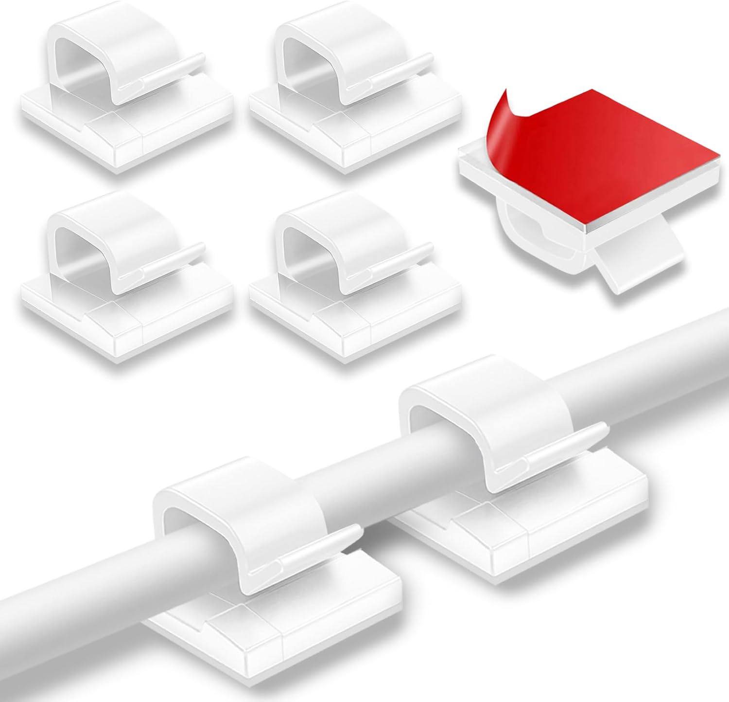 - Self-Adhesive Clips: Sticky cable holder clip with self adhesive pad can grip the surfaces stably which can be removed easily without damage to the desktop and with no residue leaving on the surfaces.