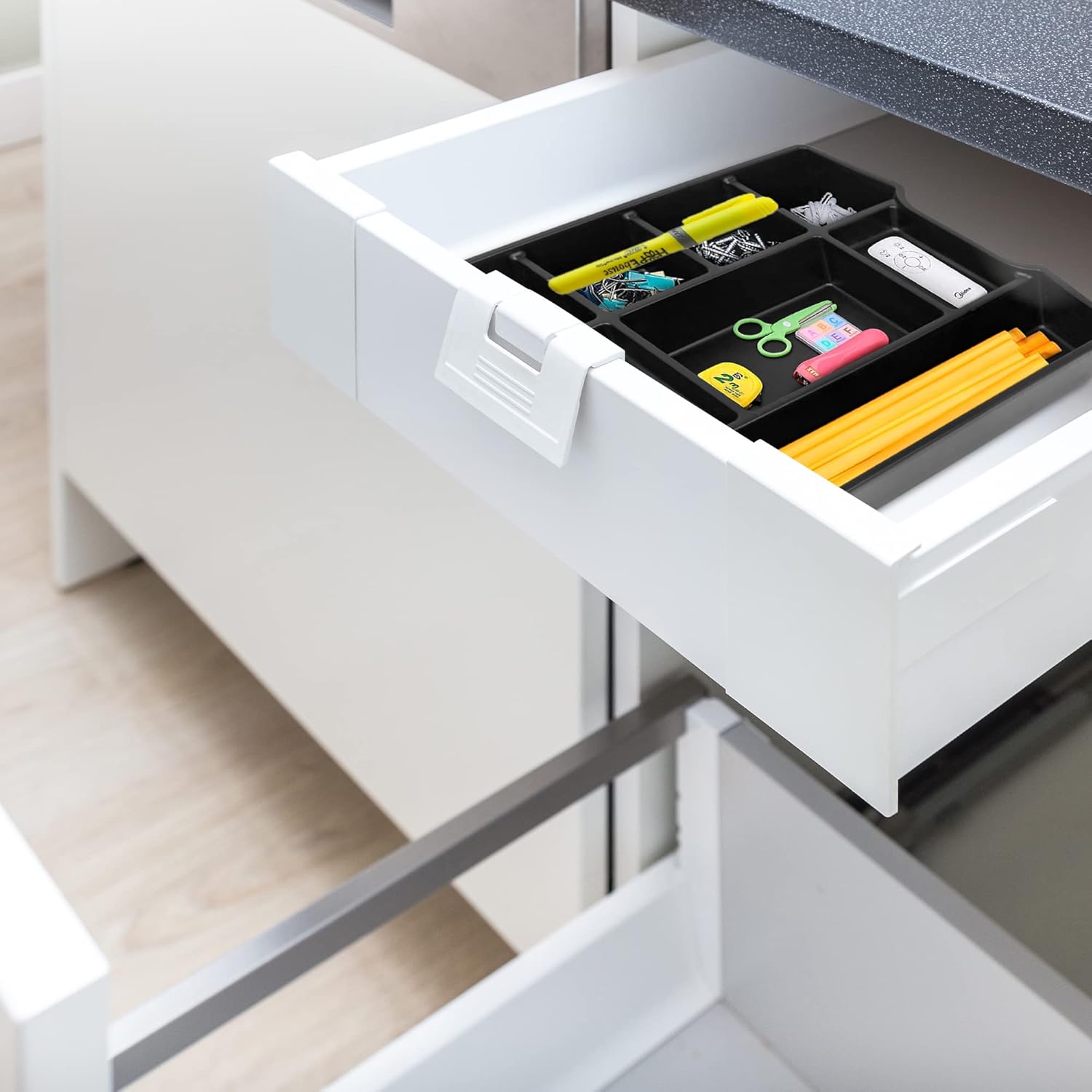 - Multi-compartment drawer organizer to sort and organize all your office supplies. Measures 14.88 x 11.88 x 2.5