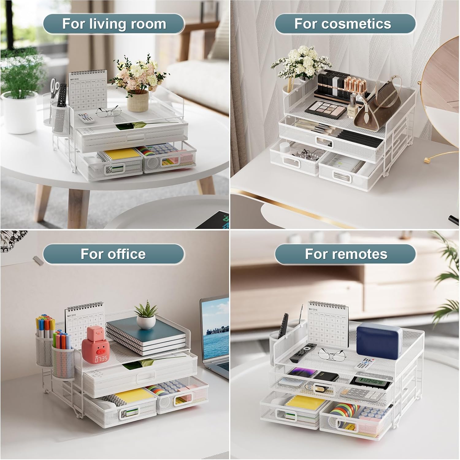 - 【Convenient Personal Storage】Compared with other mesh desktop organizer. The Multi-drawer design can help you store some important papers, whether it is personal letters or personal information can provide you with a certain privacy protection space.