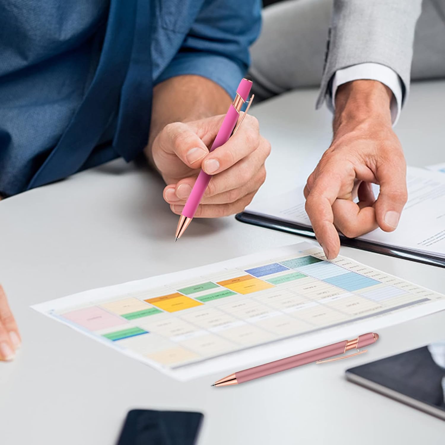 12 PCS 2 in 1 Stylus Ballpoint Pen with Stylus Tip, 1.0 mm Black Ink Metal Pen Stylus Pen for Touch Screens (Rose Gold & Pink)