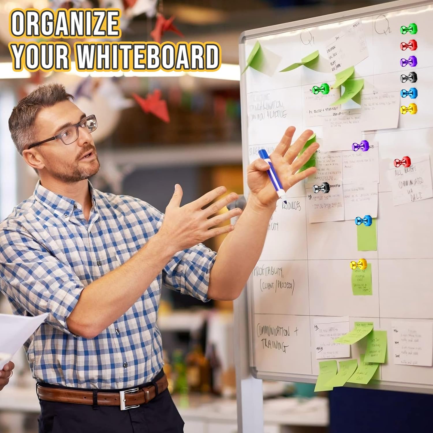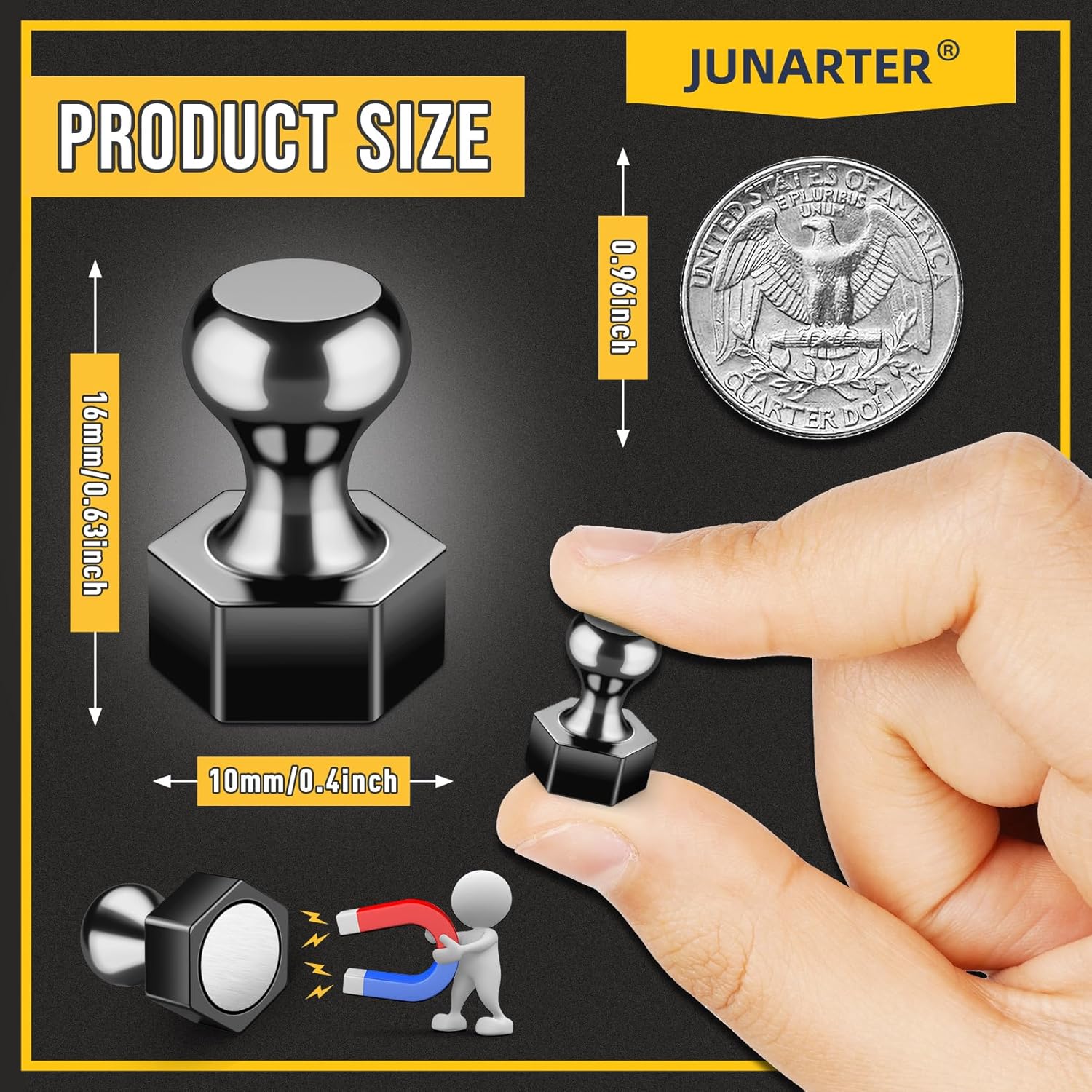 - Strong and Versatile: The Junarter 20 Pack Magnetic Push Pins are designed to provide exceptional holding power, making them ideal for a variety of applications. Whether you need to secure notes, reminders, or photos to your fridge, whiteboard, locker, or any magnetic surface, these neodymium magnets will get the job done.