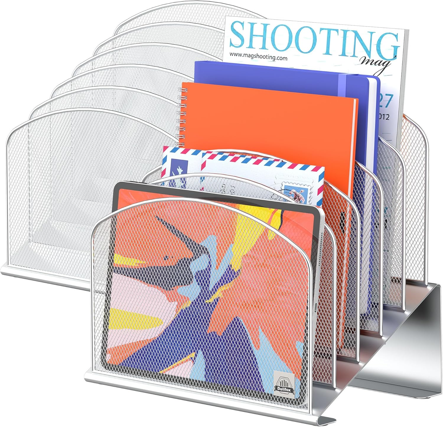- ▶ SUFFICIENT SPACE FOR STORAGE. Delifox 5-compartment desktop file organizer is large enough to hold and classify many document or papers so as to eliminate worry of document run-off and keep track of files, folders, and other important papers