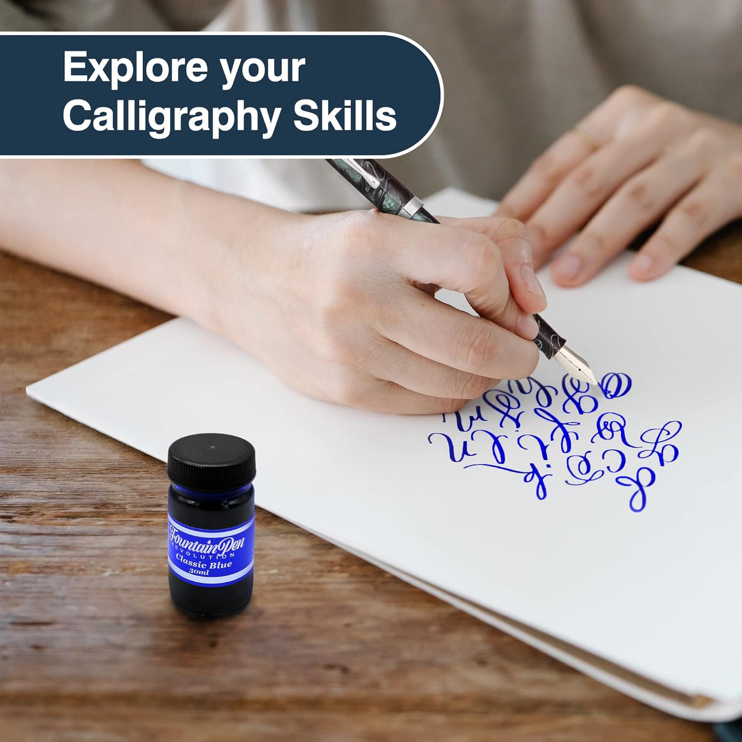 - Superior-Quality: This blue fountain ink for pen is crafted with premium components to support vivid and stylish penmanship. Each 30ml blue fountain pen ink bottle is highly saturated and produces a clear line definition with an even flow.