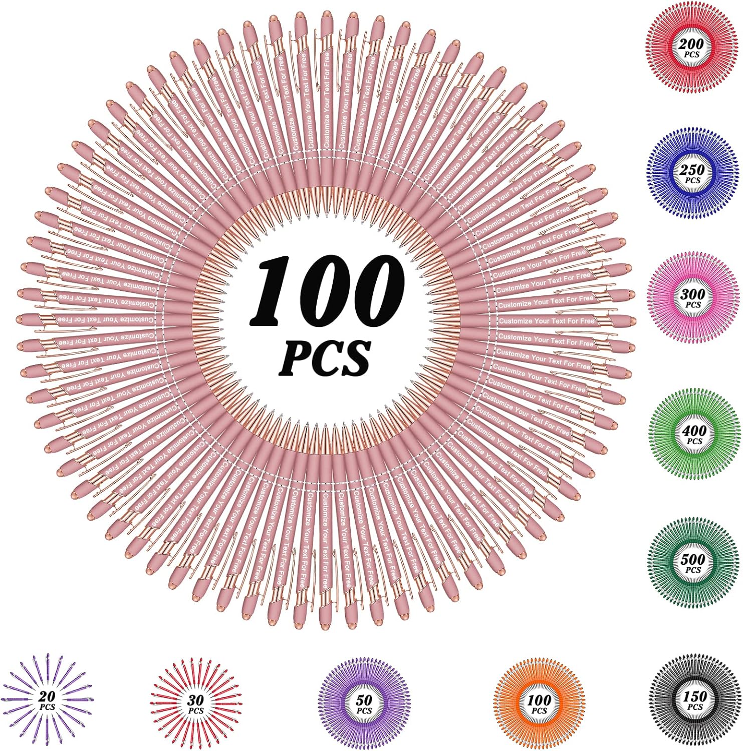 - ā Custom Pens Bulk: We provide 50+/100+/150+/250+/300+/400+/500 pcs pens for you to customize. You can leave any text you need on the pen, and we will engrave it perfectly on each pen. These multi-colored pens with perfect craftsmanship will be the best choice for parties, conferences, trades, companies, churches, etc.