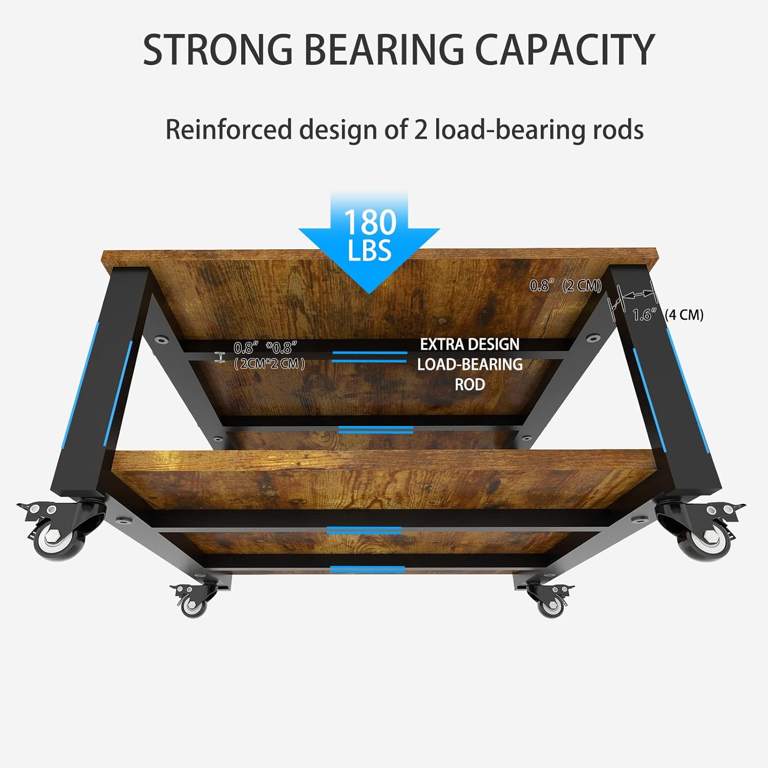 - 【Stable & Durable】We use reinforced design to add 2 load-bearing rods under each panel, also thickening the steel pipe of vertical support bar to 1.6’’*0.8’’ instead of normal size 0.8’’*0.8’’ to ensure its stability and load-bearing capacity more than 180lbs(80KG) , Use industrial wheels instead of ordinary plastic wheels, with strong load-bearing capacity and more durability.