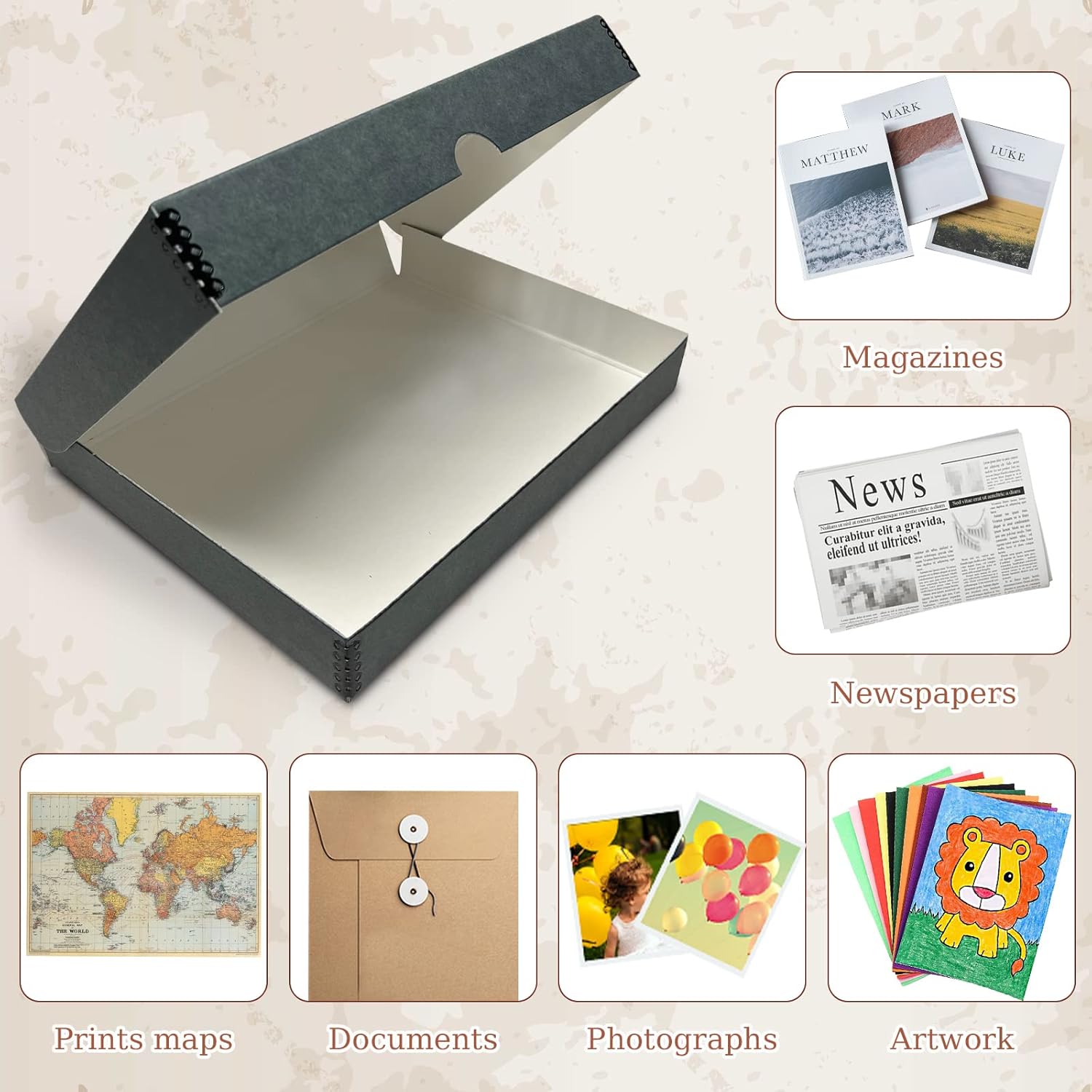 - Material: Made in USA. This storage box is acid-free, lignin-free archival quality with 60 point board, good for long-term storage